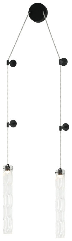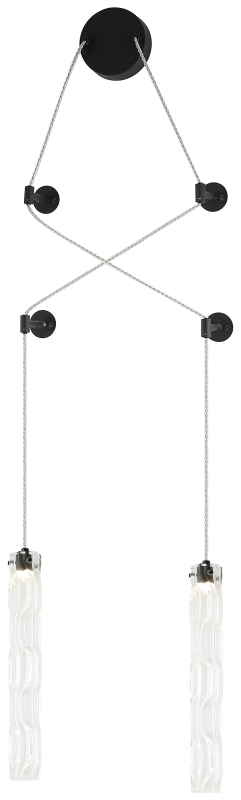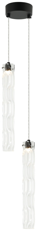 Светильник подвесной настенный из коллекции Still выполнен из металла, окрашенного в черный цвет, и декорирован вытянутыми стеклянными плафонами с волнистой фактурой. Провод на светильнике выполнен из перекрученного прозрачного шнура в винтажном стиле. Уникальность этих светильников заключается в том, что в зависимости от предпочтений их можно устанавливать как на потолок, так и на стену. Для крепления на стену в комплект добавляются дополнительные держатели.