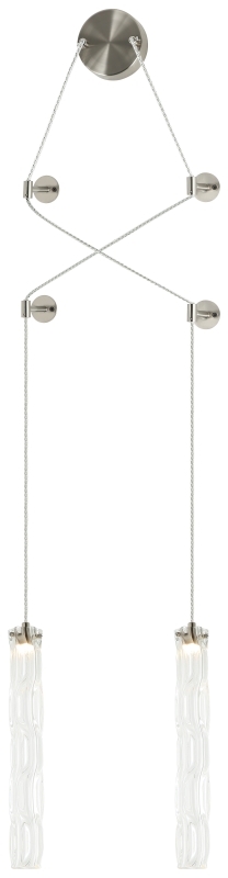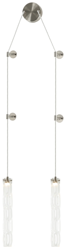 Светильник подвесной настенный из коллекции Still выполнен из металла, гальванизированного в цвет никеля, и декорирован вытянутыми стеклянными плафонами с волнистой фактурой. Провод на светильнике выполнен из перекрученного прозрачного шнура в винтажном стиле. Уникальность этих светильников заключается в том, что в зависимости от предпочтений их можно устанавливать как на потолок, так и на стену. Для крепления на стену в комплект добавляются дополнительные держатели.