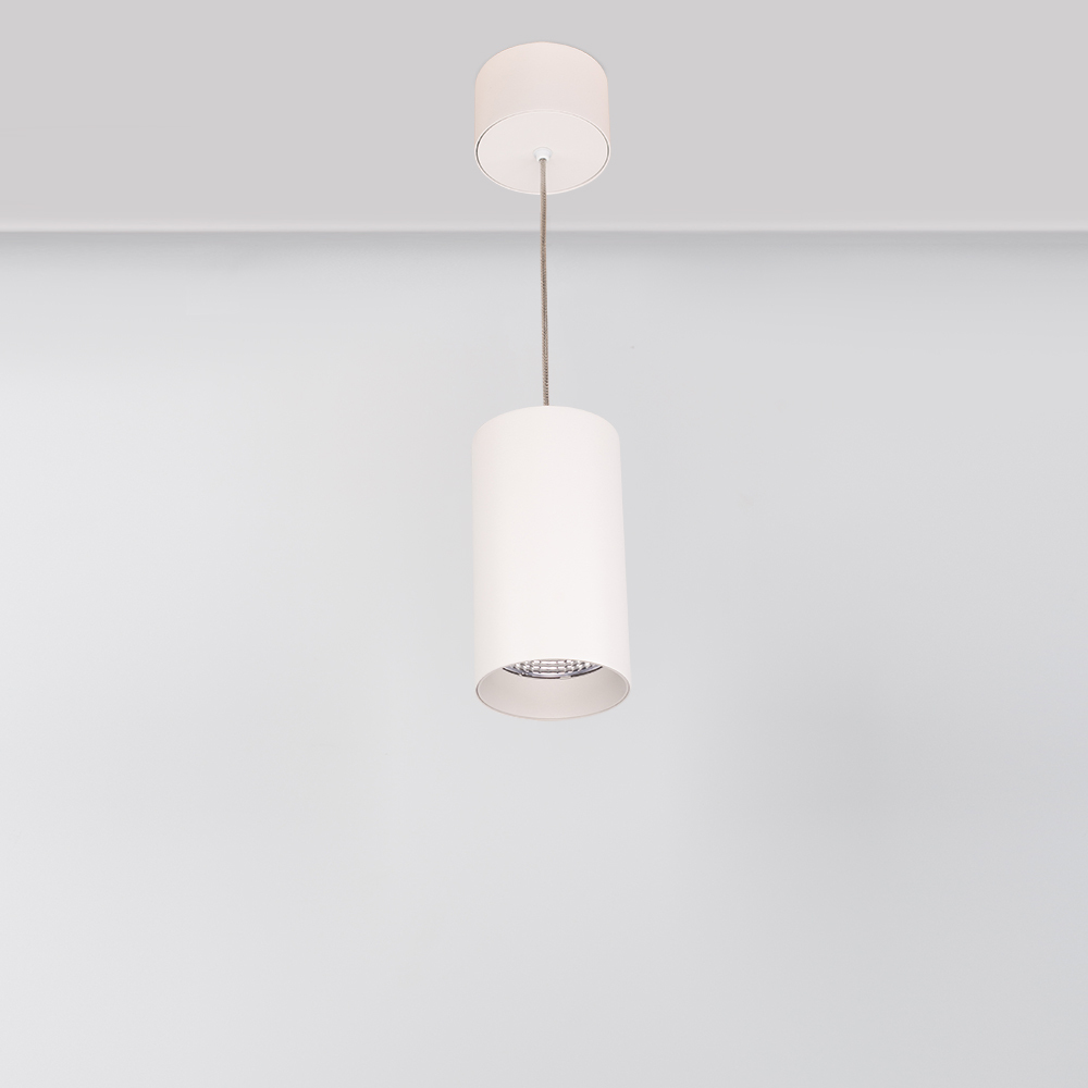 Подвесной светильник 15Вт, белый круглый корпус, белая вставка, металл. Цвет ДНЕВНОЙ БЕЛЫЙ 4000K, св.поток 1100лм, CRI(Ra)>80, угол 40°. Размер Ø85x155мм. Встроенный драйвер PRI:220-240VAC, SEC:DC 350mA 30-43V 15Вт, размер драйвера Ø65 mm, h 26 mm