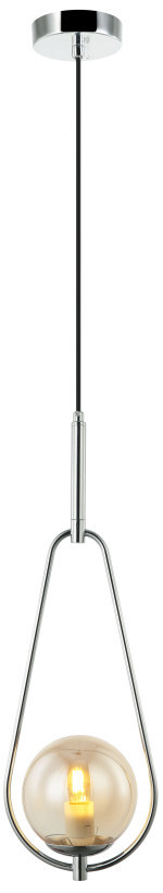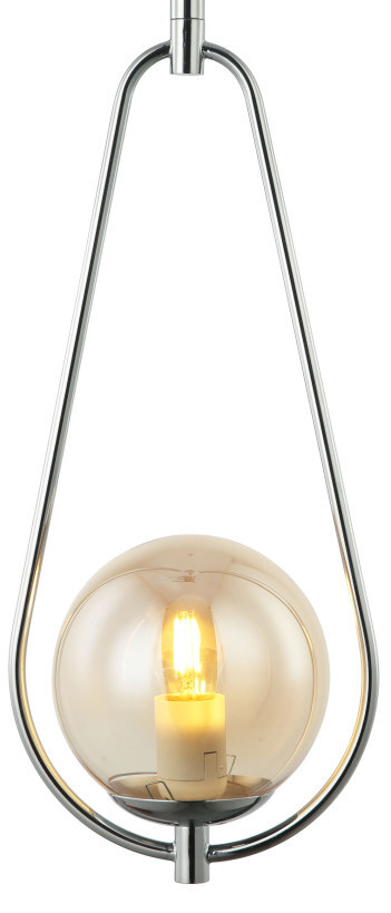 Светильник подвесной из коллекции Globo выполнен из металла, гальванизированного в цвет хрома, и плафон из стекла цвета шампань.