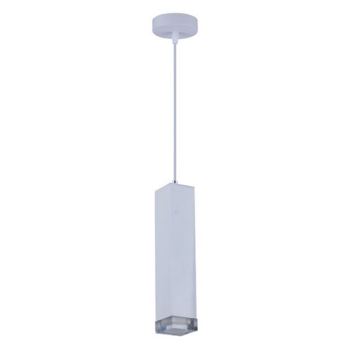 Светильник подвесной из коллекции Faino имеет металлическую потолочную чашу, окрашенную в белый цвет, и металлический плафон, также окрашенный в белый цвет. Источник света закрыт белым матовым и прозрачным литьевым акрилом.