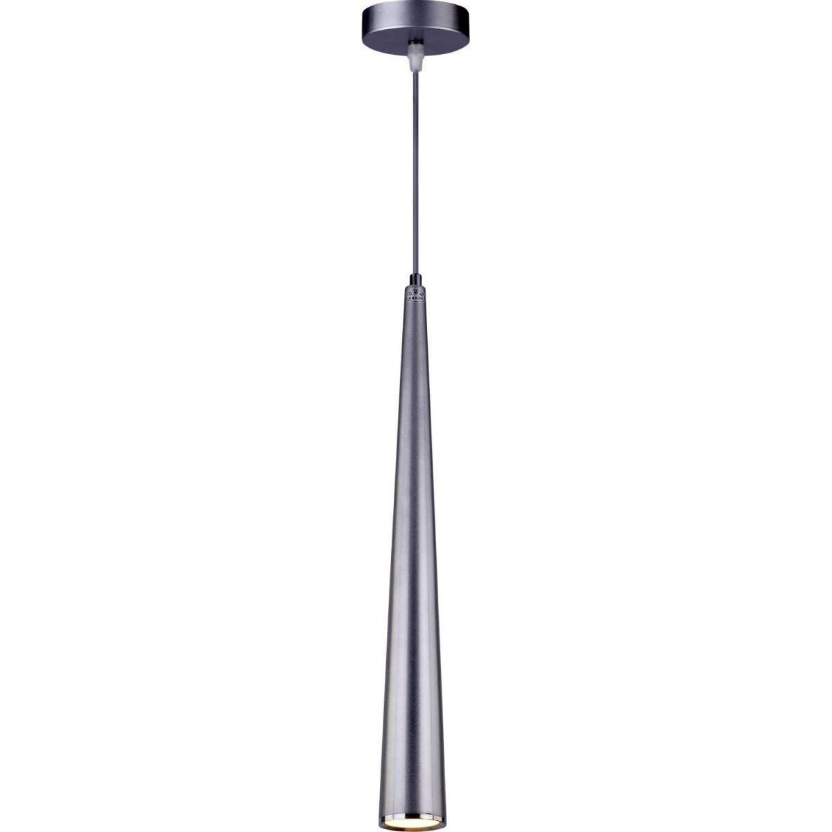 Светильник подвесной из коллекции Cone имеет металлическую потолочную чашу, гальванизированную в цвет хрома, и металлический конусовидный плафон, также гальванизированный в цвет хрома. Источник света закрыт белым матовым акрилом.