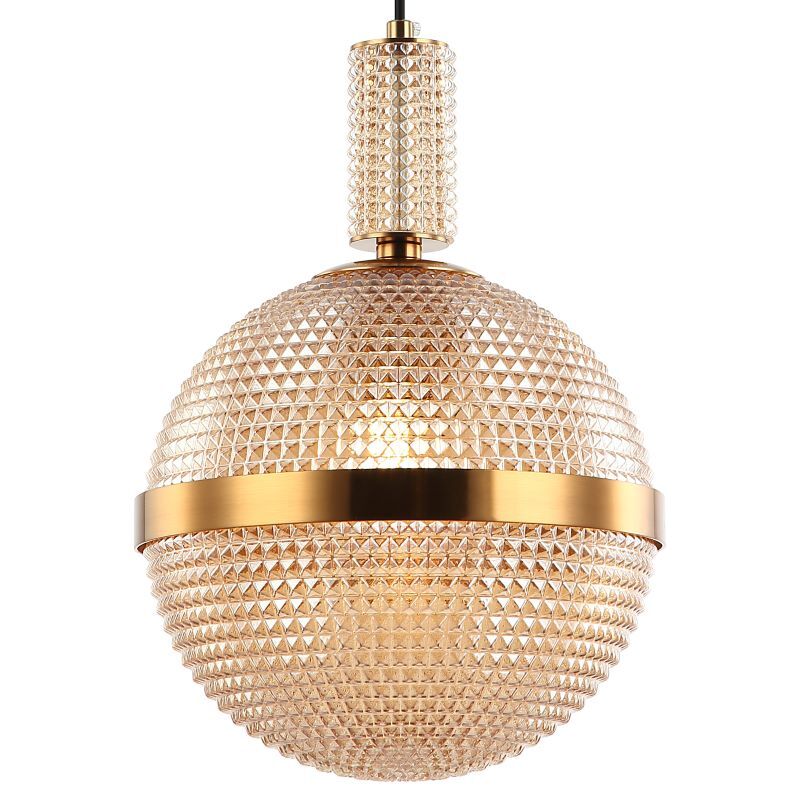 Светильник подвесной из коллекции Rope выполнен из металла, гальванизированного в цвет бронзы, и круглого плафона из фактурного стекла цвета шампань. По центру плафон отделан металлическим кантом, гальванизированным в цвет арматуры. Премиальное качество и неповторимыи? дизаи?н светильников идеально подои?дут как в классические, так и современные интерьеры.