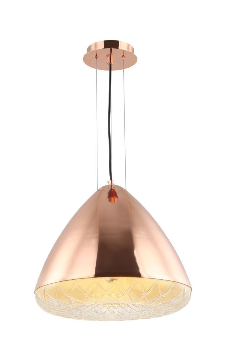 Светильник подвесной из коллекции Senso выполнен из металла, гальванизированного в цвет меди, и металлического плафона цвета меди. С внутренней стороны плафон окрашен в цвет золота. Источник света закрыт прозрачным текстурированным стеклом. Современная форма и высокое качество светильников идеально подойдут как в классические, так и современные интерьеры.