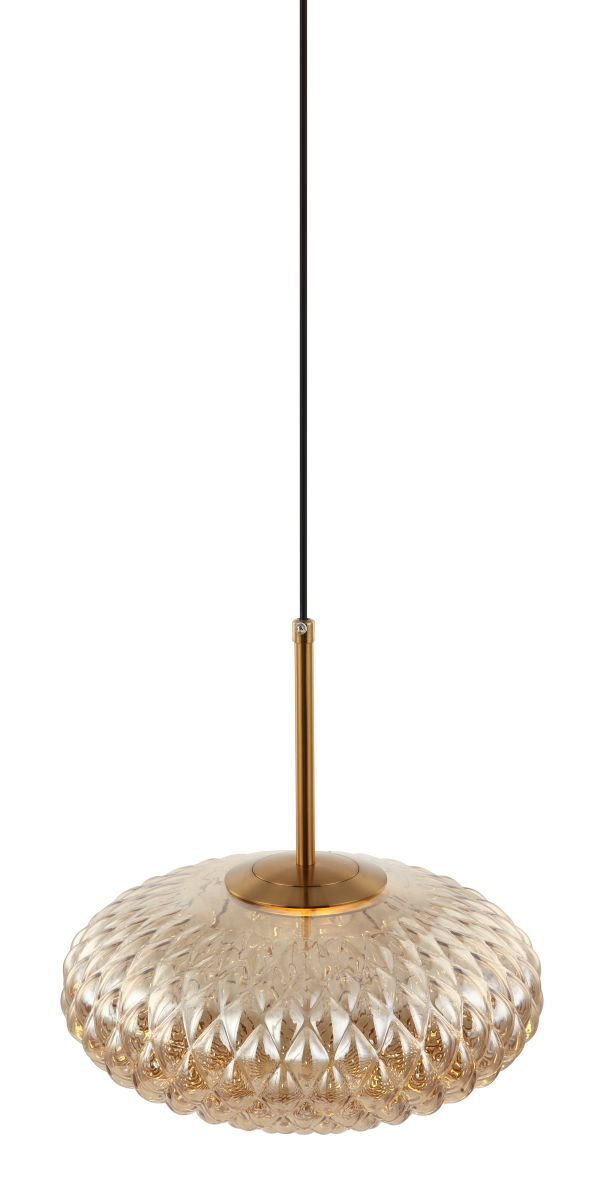 Светильник подвесной из коллекции Roxie выполнен из металла, гальванизированного в цвет бронзы, и декорирован плафоном овальной формы из фактурного градуированного стекла янтарного цвета. Современная форма и высокое качество светильников идеально подойдут как в классические, так и современные интерьеры.