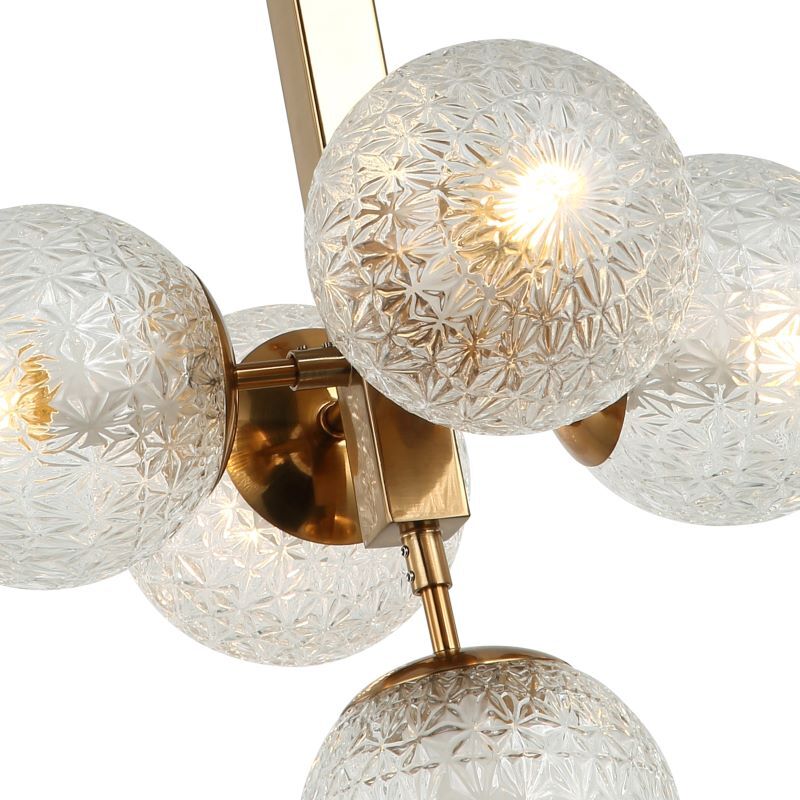 Светильник подвесной из коллекции Felis выполнен из металла, гальванизированного в цвет бронзы, и декорирован плафонами из фактурного прозрачного стекла. Премиальное качество и неповторимыи? дизаи?н светильников идеально подои?дут в современные дизайнерские интерьеры.