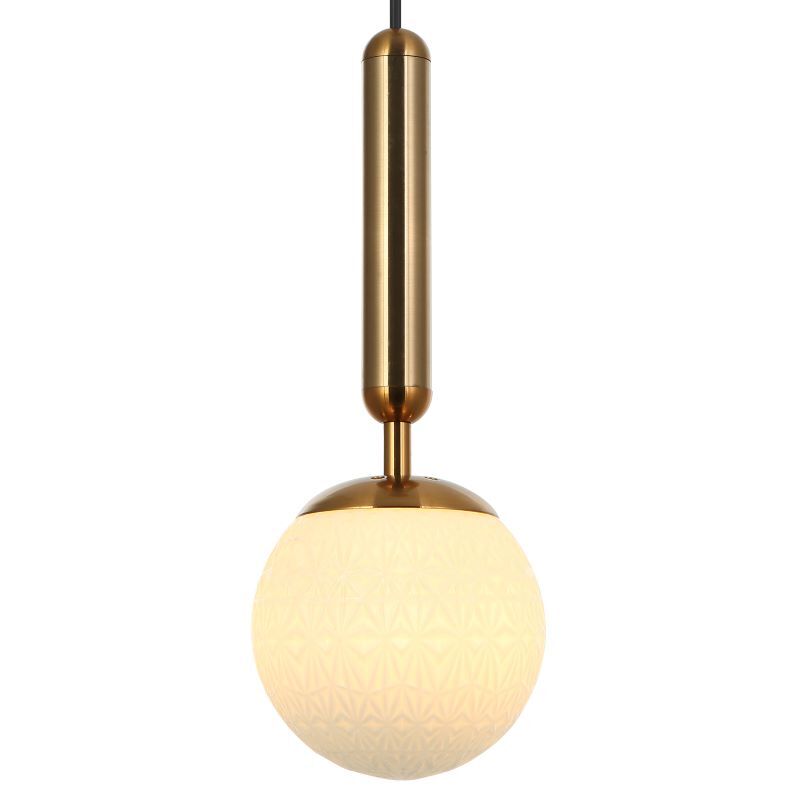 Светильник подвесной из коллекции Felis выполнен из металла, гальванизированного в цвет бронзы, и декорирован плафоном из фактурного белого матового стекла. На подвесе дополнительно используется металлический декоративный элемент, гальванизированный в цвет арматуры. Премиальное качество и неповторимыи? дизаи?н светильников идеально подои?дут в современные дизайнерские интерьеры.