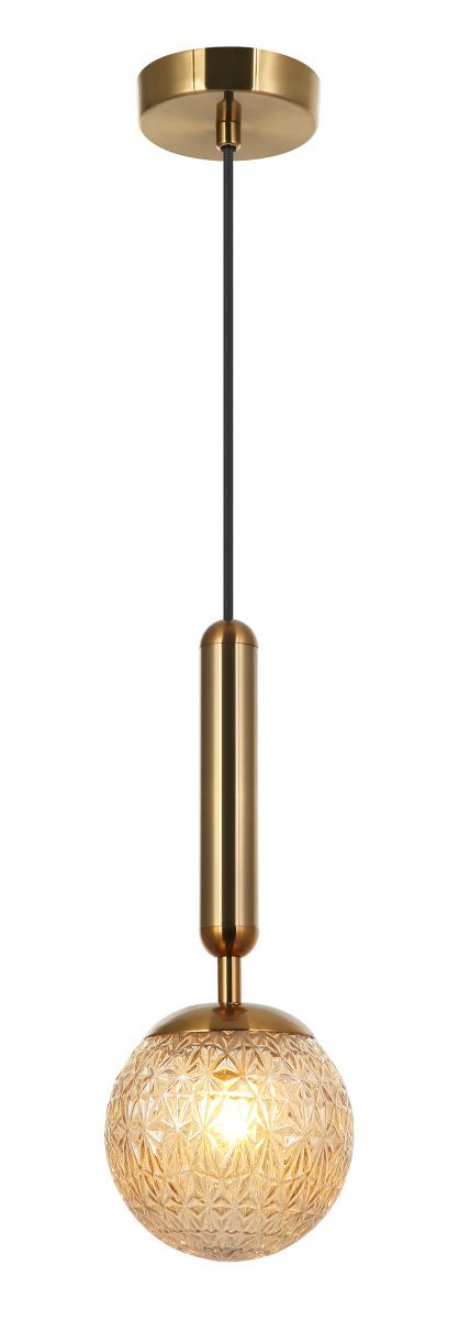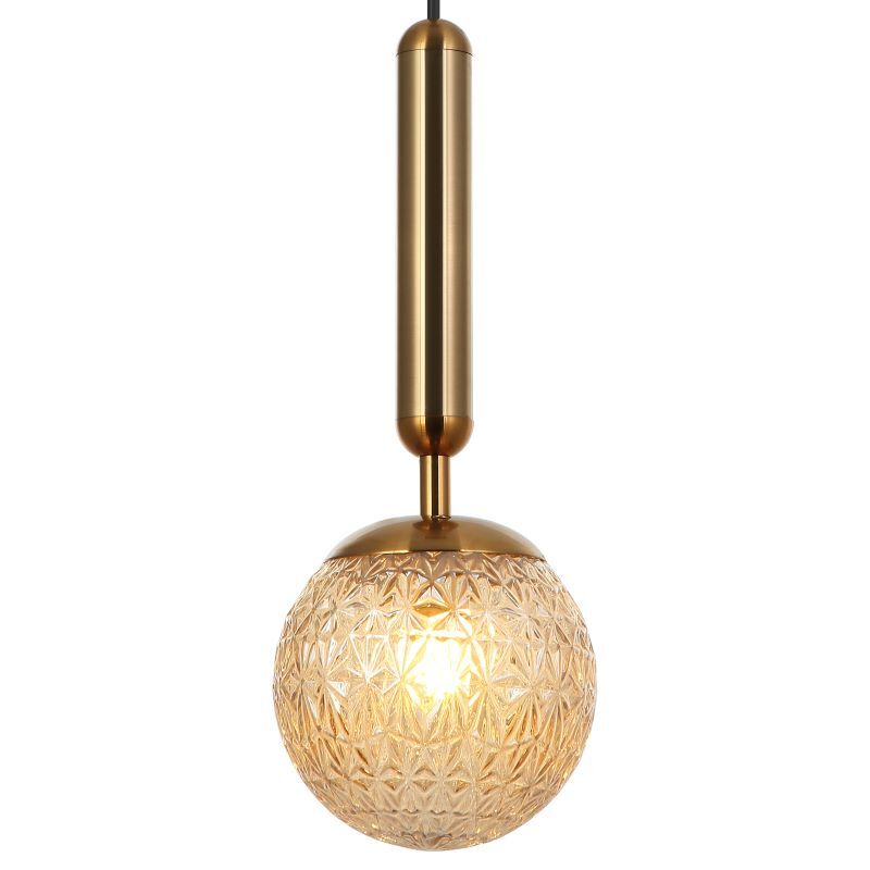 Светильник подвесной из коллекции Felis выполнен из металла, гальванизированного в цвет бронзы, и декорирован плафоном из фактурного стекла цвета шампань. На подвесе дополнительно используется металлический декоративный элемент, гальванизированный в цвет арматуры. Премиальное качество и неповторимыи? дизаи?н светильников идеально подои?дут в современные дизайнерские интерьеры.
