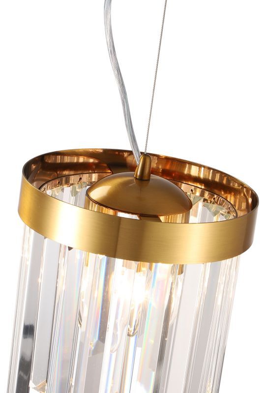 Светильник подвесной из коллекции Venecia выполнен из металла, гальванизированного в цвет бронзы, и декорирован прозрачным хрусталем высшей категории прямоугольной формы разной длины. Современная форма и высокое качество светильников идеально подойдут как в классические, так и современные интерьеры.