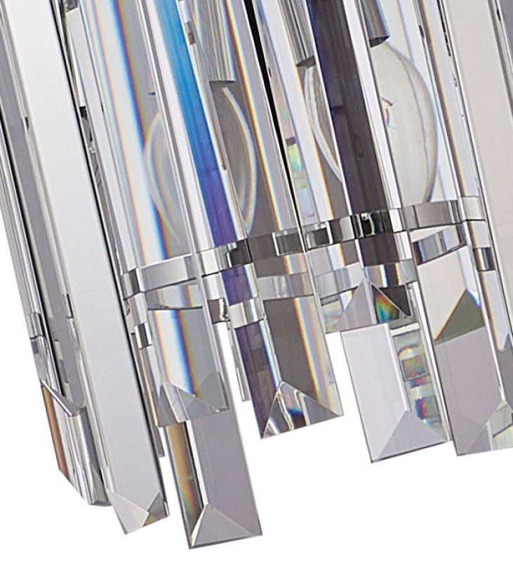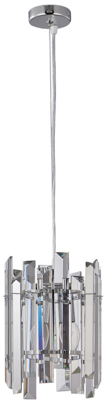 Светильник подвесной из коллекции Feeriya выполнен из металла, гальванизированного в цвет хрома, и декорирован хрусталем высшей категории прямоугольной формы разных размеров. Изящное преломление света в хрустале придает светильнику индивидуальность. Современная форма и высокое качество светильников идеально подойдут как в классические, так и современные интерьеры.