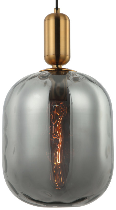Светильник подвесной из коллекции Base выполнен из металла, гальванизированного в цвет бронзы, и декорирован овальным плафоном из оплавленного стекла дымчатого цвета с точечной текстурой. На подвесе дополнительно используется металлический декоративный элемент, гальванизированный в цвет арматуры. Премиальное качество и неповторимыи? дизаи?н светильников идеально подои?дут в современные и дизайнерские интерьеры.