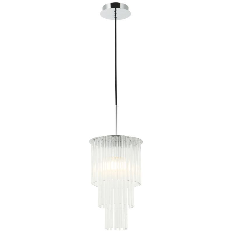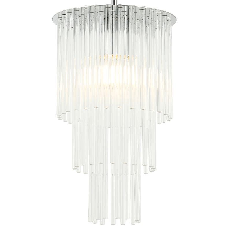 Светильник подвесной из коллекции Imposio выполнен из металла, гальванизированного в цвет хрома. Декор из стеклянных прозрачных трубочек крепится на нержавеющую сталь, отполированную до зеркального блеска. Современная форма и высокое качество светильников идеально подойдут в современные и дизайнерские интерьеры.