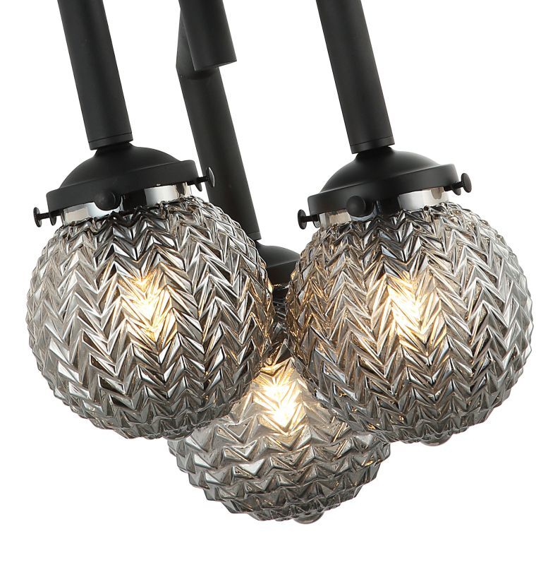 Светильник подвесной из коллекции Grozde выполнен из металла, окрашенного в черный цвет, и декорирован плафонами из фактурного стекла дымчатого цвета. Благодаря широкой арматуре светильник выглядит стильно и респектабельно. Премиальное качество и неповторимыи? дизаи?н светильников идеально подои?дут в современные и дизайнерские интерьеры.