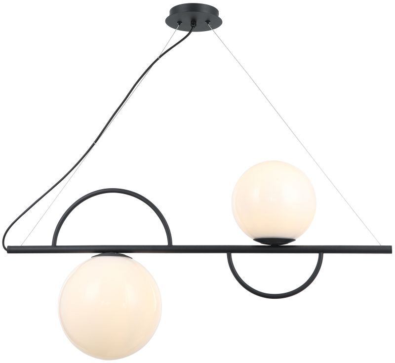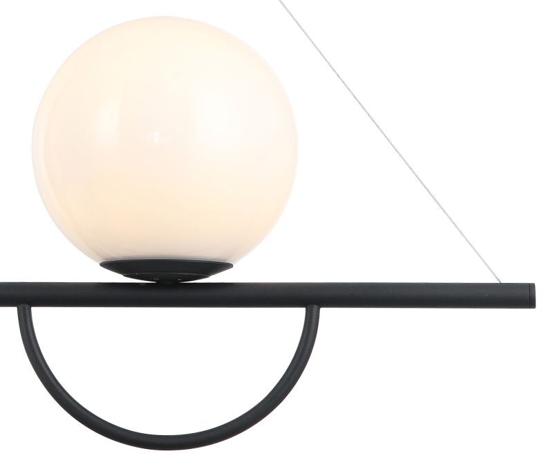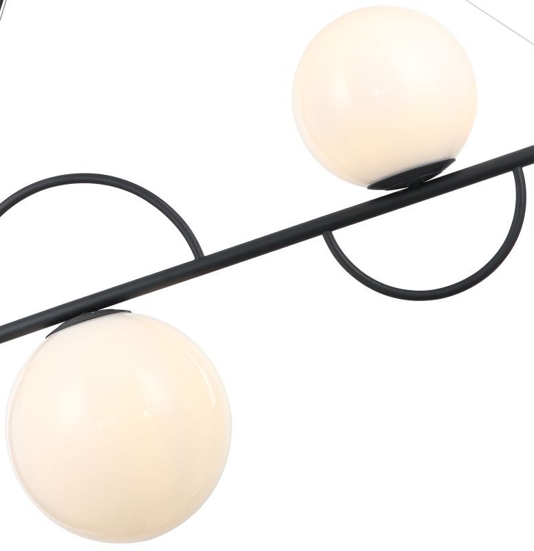 Светильник подвесной коллекции Vine выполнен из металла, окрашенного в черный цвет, и декорирован белыми матовыми стеклянными плафонами разных диаметров. Плафоны устанавливаются за счет винтовой резьбы. Премиальное качество и неповторимыи? дизаи?н светильников идеально подои?дут в современные и дизайнерские интерьеры.