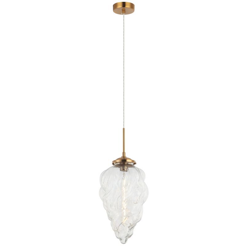 Светильник подвесной из коллекции Cream выполнен из металла, гальванизированного в цвет бронзы, и декорирован оригинальным прозрачным стеклянным плафоном, имитирующим кремовый десерт. Провод на подвесе выполнен из перекрученного прозрачного шнура в винтажном стиле. Премиальное качество и неповторимыи? дизаи?н светильников идеально подои?дут как в классические, так и современные дизайнерские интерьеры.