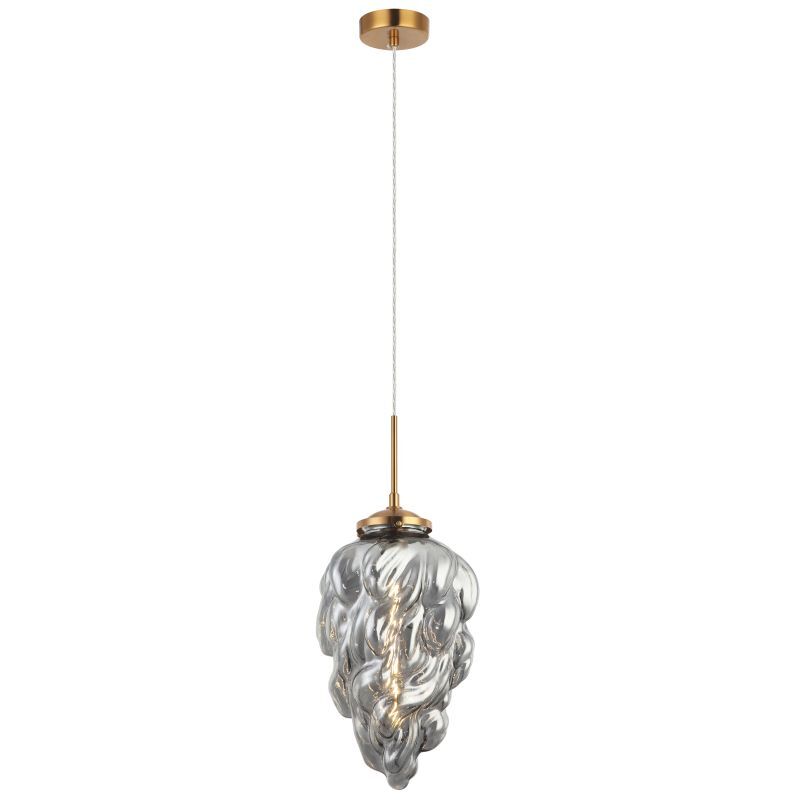 Светильник подвесной из коллекции Cream выполнен из металла, гальванизированного в цвет бронзы, и декорирован оригинальным стеклянным плафоном дымчатого цвета, имитирующим кремовый десерт. Провод на подвесе выполнен из перекрученного прозрачного шнура в винтажном стиле. Премиальное качество и неповторимыи? дизаи?н светильников идеально подои?дут как в классические, так и современные дизайнерские интерьеры.