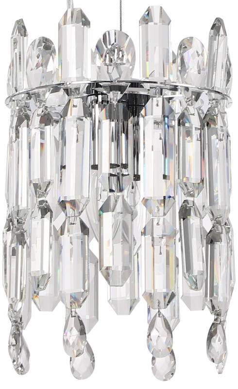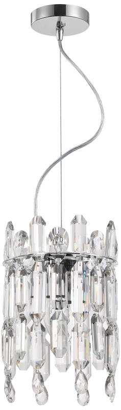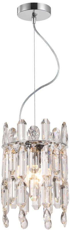 Светильник подвесной из коллекции Legacy выполнен из металла, гальванизированного в цвет хрома, и декорирован прозрачным хрусталем высшей категории вытянутой и округлой формы. Оригинальная форма хрусталя придает подвесу утонченность и благородство.