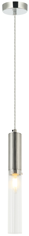 Светильник подвесной из коллекции Satori выполнен из металла, гальванизированного в цвет никеля, и декорирован вытянутым прозрачным стеклянным плафоном с линейным декором. Провод на подвесе выполнен из перекрученного прозрачного шнура в винтажном стиле. Данная серия идеально сочетается с сериеи? WUNDER.