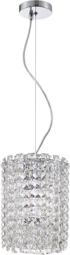 Светильник подвесной из коллекции DELONE выполнен из металла, гальванизированного в цвет хрома, и декорирован подвесками из прозрачного хрусталя в форме октагон. Светильники коллекции отличает оригинальный дизайн и дополнительный декор из хрусталя, закрывающий источники света снизу.