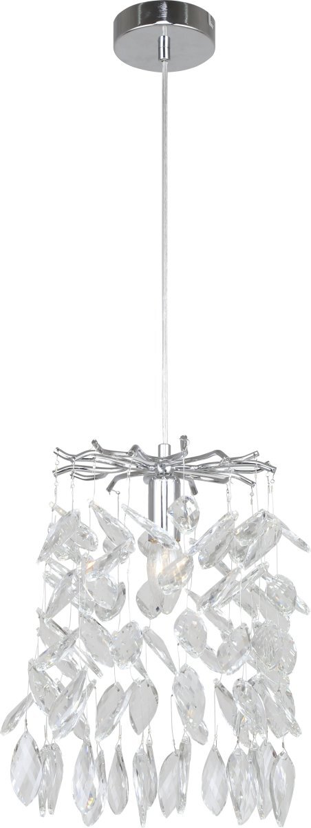 Светильник подвесной коллекции RAMO выполнен из металла, гальванизированного в цвет хрома, и декорирован гроздьями из хрусталя винтажной формы. Отличительной особенностью данной коллекции является ручное изготовление каркаса с дополнительной полировкой стыков арматуры и увеличенным количеством хрустальных подвесок ( 16 веточек по 5 кристаллов).