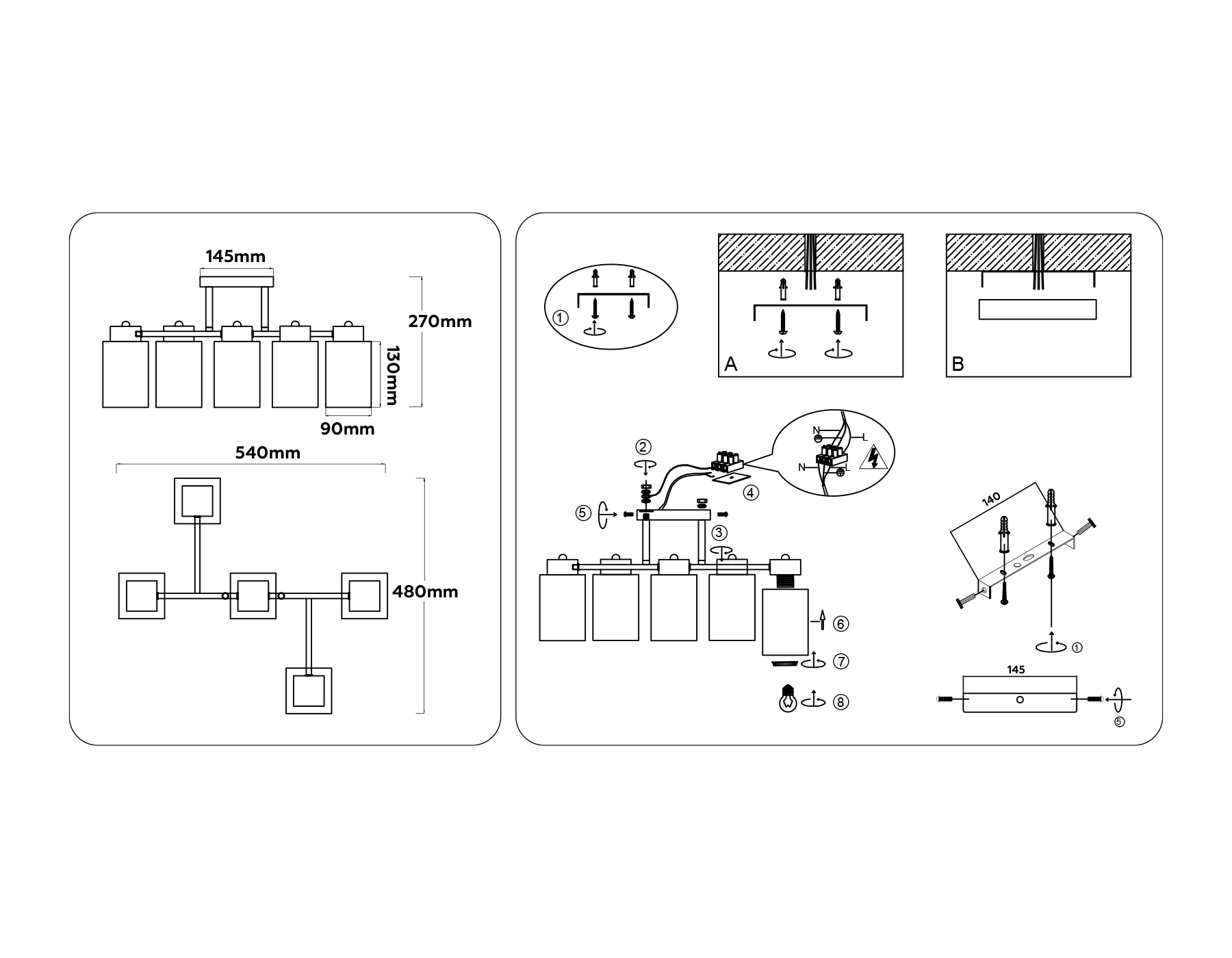 Светильник подвесной TR303048/5 BK/GD черный/золото E27/5 max 60W 540*480*270
