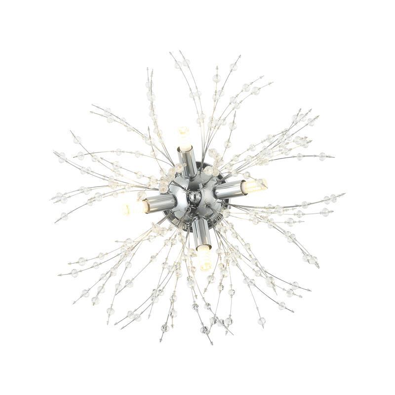 Светильник потолочный настенный из коллекции Salut выполнен из металла, гальванизированного в цвет хрома, и декорирован хрустальными бусинами, имитирующими салют.
