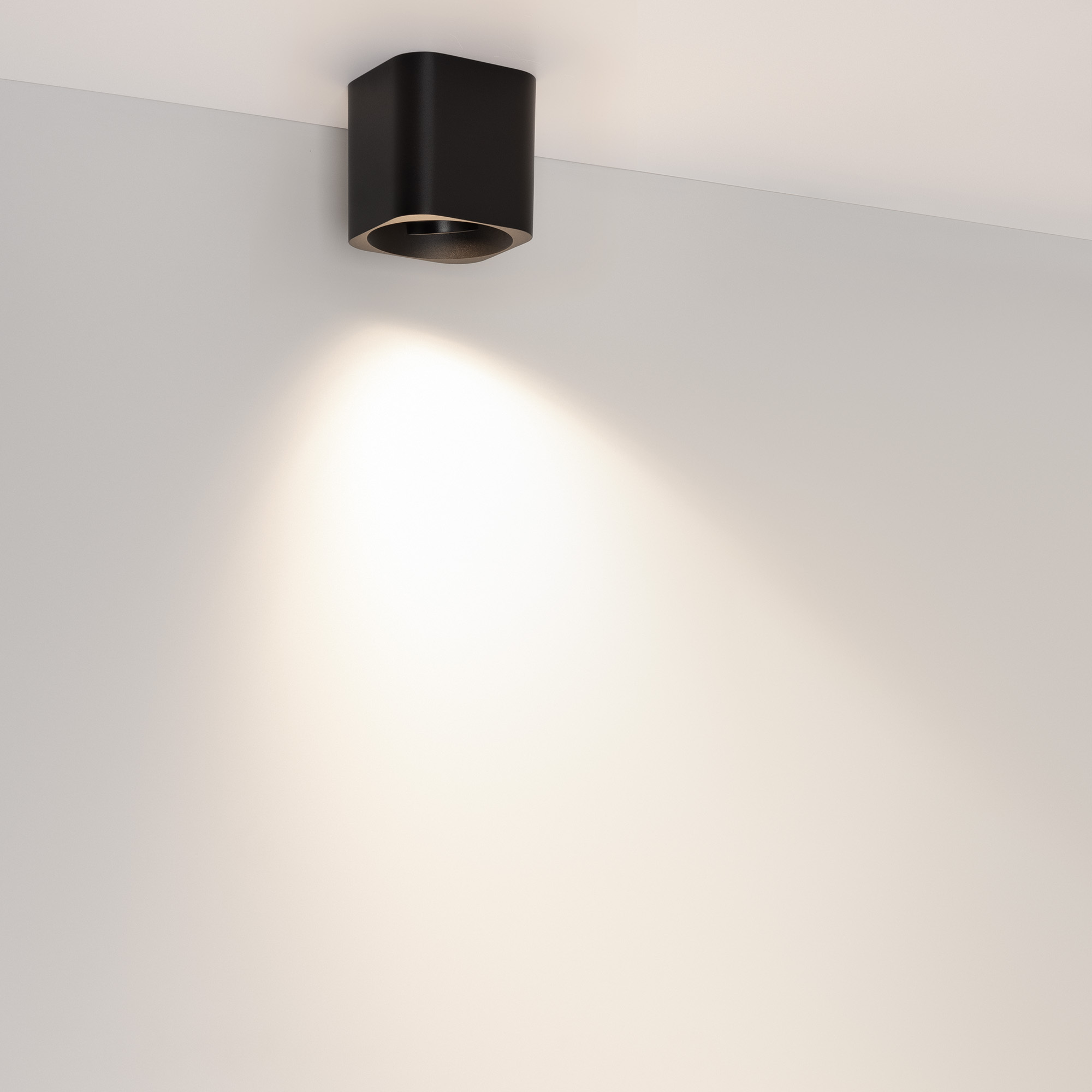 Накладной интерьерный светильник c регулируемым углом излучения. Мощность 10 Вт, св. поток 870-880 лм, 87 лм/Вт, дневной 4000K, CRI>90, угол 20°-45°, напряжение питания 230 В. Черный квадратный корпус, угол поворота светового модуля 60° (30°+30°), степень защиты IP20. Размер: длина 95 мм, ширина 95 мм, высота 98 мм. Монтаж накладной. Драйвер встроенный 27-48 В, 250 мА, пульсация < 0,3 %.