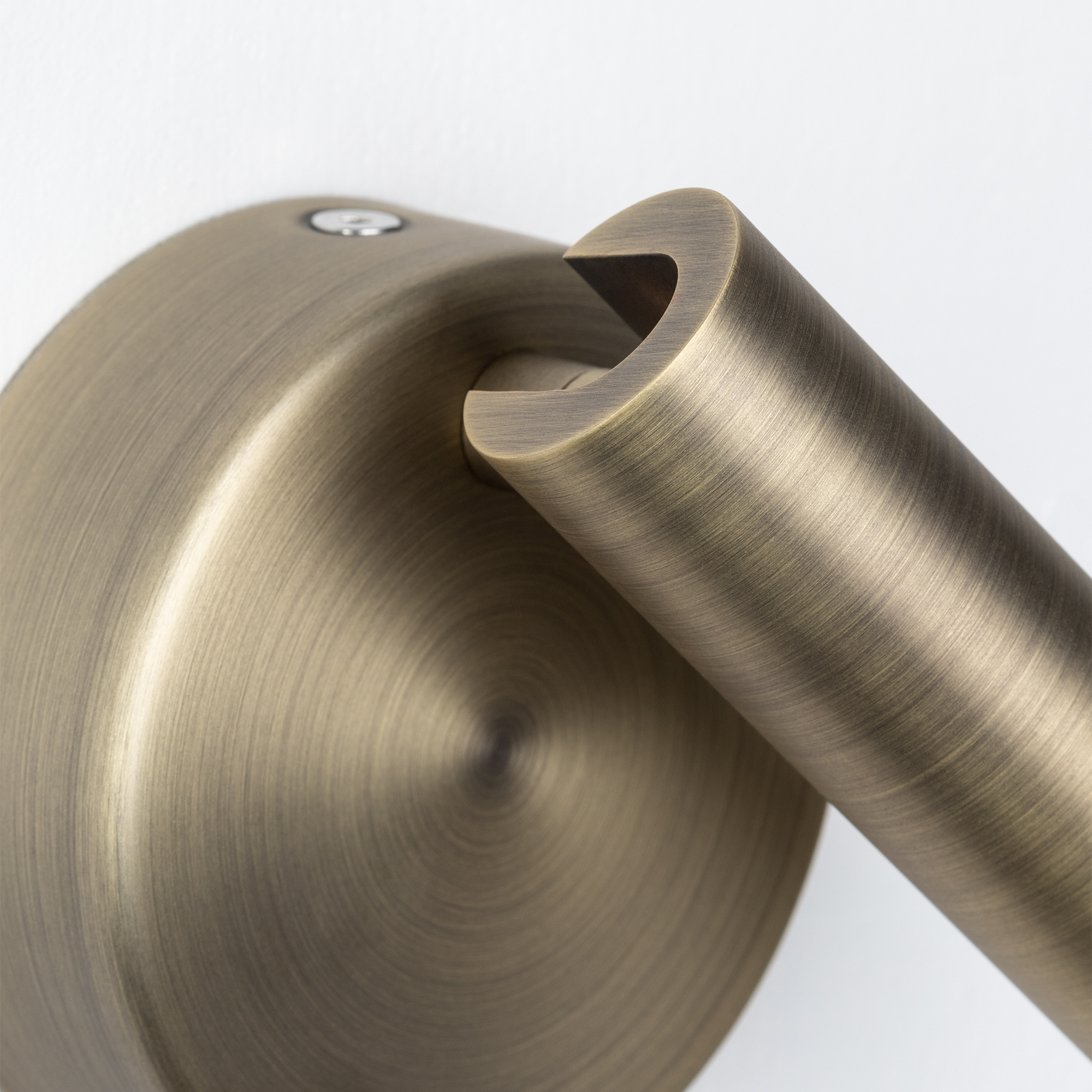 Накладной настенный светильник 3Вт, алюминиевый корпус в бронзовом цвете без кнопки включения. Цвет ТЕПЛЫЙ БЕЛЫЙ 3000K, св.поток 200лм, CRI(Ra)>80, угол 20°. Размер Основание Ф90x31мм, Светоизлучатель Ø30×110 мм. IP20. Питание AC220-240V, 3Вт, встроенный драйвер 2,5-4,5В, 700 мА.