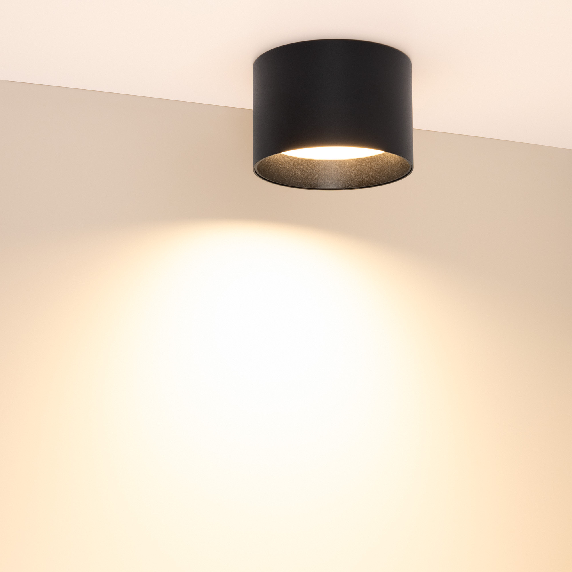 Накладной светильник. Мощность 12 Вт, св. поток 900-960 лм, 80-85 лм/Вт, теплый 2700 K, теплый 3300K, дневной 4000K (переключается), CRI>90, угол 80°, напряжение питания 230 В. Черный круглый корпус из алюминия, экран PC, степень защиты IP54. Размер: диаметр 120 мм, высота 80 мм. Монтаж накладной. Драйвер 20-40 В, 300 мА, пульсация <2%.