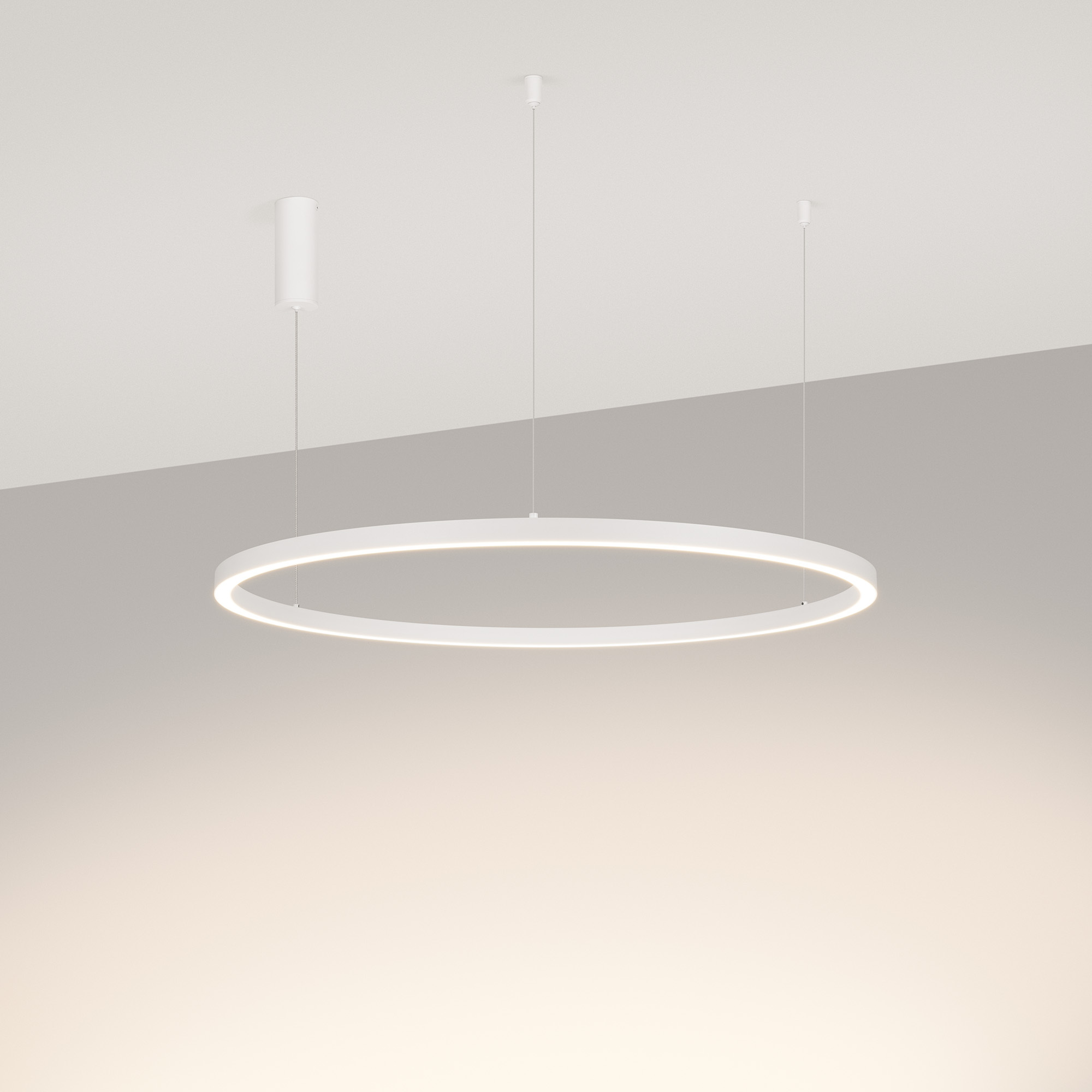 Подвесной светильник. Мощность 42 Вт, св. поток 2500 лм, 60 лм/Вт, дневной 4000 K, CRI>90, угол 120°, напряжение питания 230 В. Белый круглый корпус из алюминия, экран силикон, степень защиты IP20. Размер: диаметр 800 мм, высота 25 мм, ширина профиля 25 мм, размер чаши: диаметр 60 мм, высота 150 мм, драйвер:115 x 40 x 28 мм, 33-40В, 1050 мА. Пульсация <5%. Монтаж подвесной, длина подвеса 1200мм.
