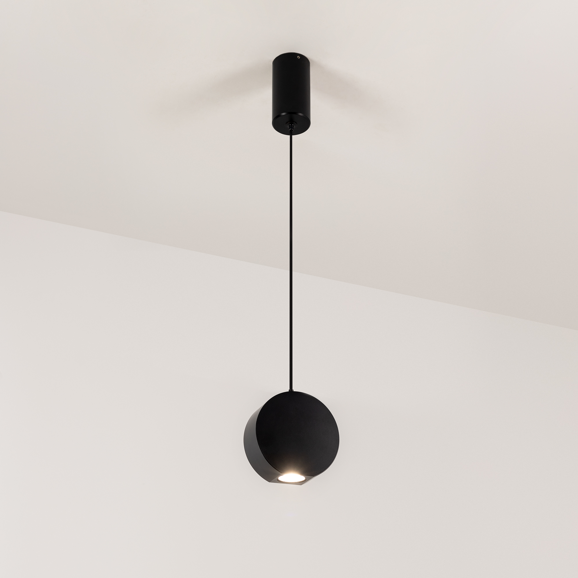 Подвесной светильник. Мощность 9 Вт, св. поток 650 лм, 73 лм/Вт, дневной 4000 K, CRI>80, угол 39°, напряжение питания 230 В. Черный круглый корпус из алюминия, экран , степень защиты IP40. Размер: диаметр 100 мм, высота 97 мм, ширина 40 мм. Монтаж подвесной, длина подвеса 1500мм, регулируемая. Габариты чаши Ø50x95 мм. Драйвер 28-42 В, 250 мА, пульсация <5%.
