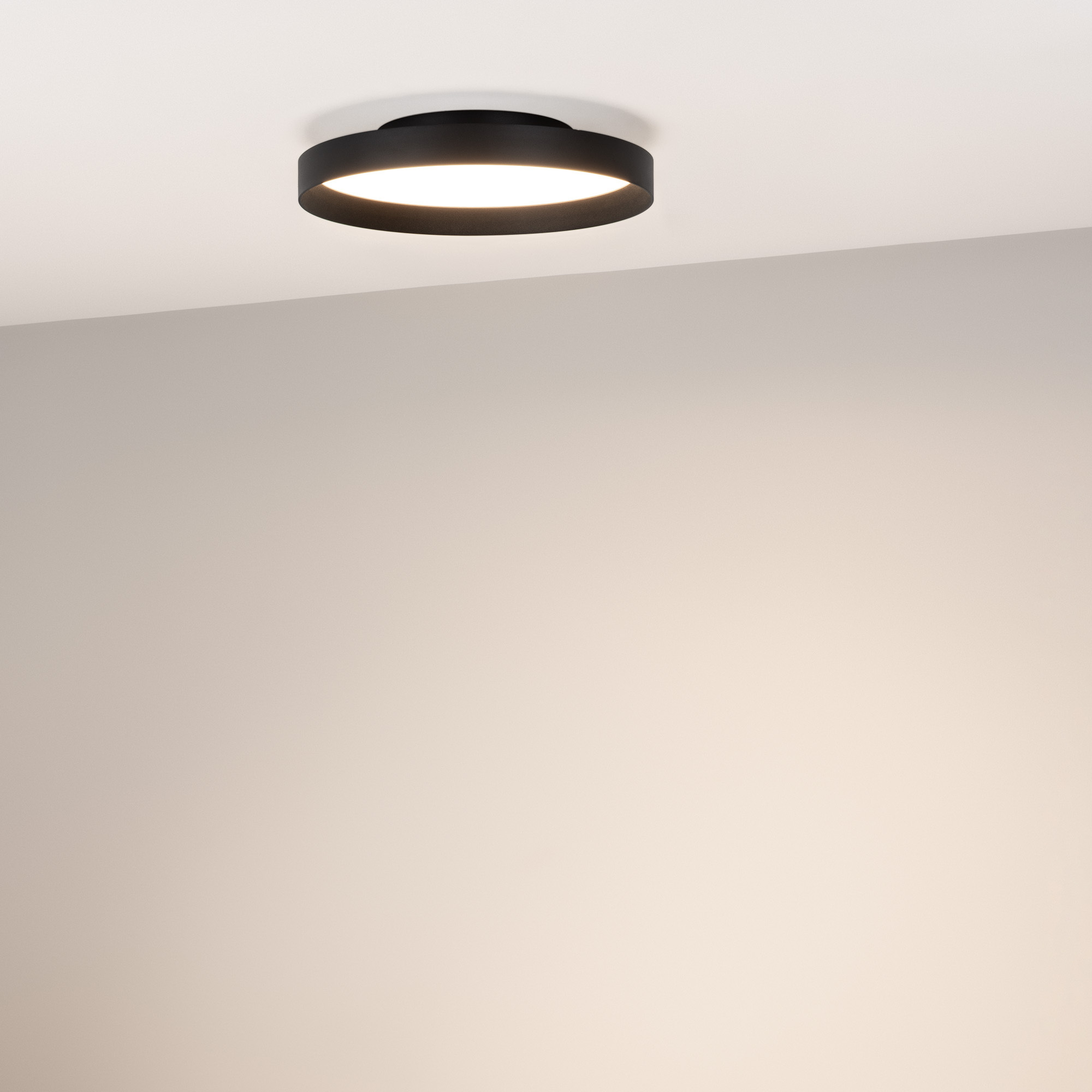 Светодиодный светильник с изменяемой цветовой температурой. Мощность 30 Вт, св. поток 2170-2400 лм, 80-95 лм/Вт, теплый 2700 K, теплый 3300 K, дневной 4000K (переключается), CRI>92, угол 80°, напряжение питания 230 В. Белый круглый корпус из алюминия, матовый призматический экран PC, степень защиты IP20. Размер: Ø 350х70 мм. Размер световой части: Ø 350х39 мм, размер основания: Ø 196х31мм. Монтаж накладной. Драйвер 26-42 В, 700 мА, пульсация <0,3%. Диммирование TRIAC.