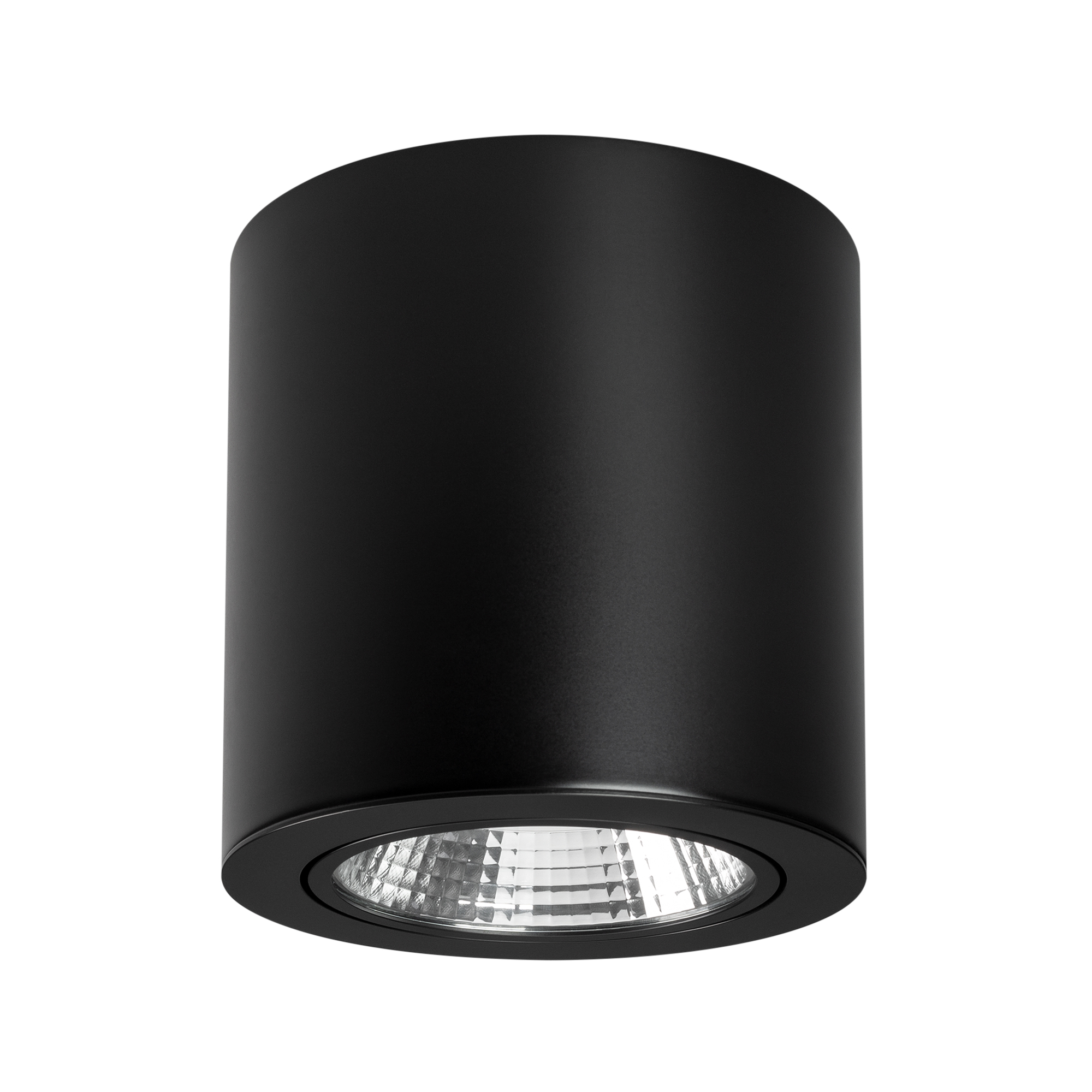 Накладной светильник 30Вт, черный корпус цилиндр. Цвет ДНЕВНОЙ 4000K, св.поток 2400-2700лм, CRI(Ra)>80, наклоняемая ось, угол 24°. Размер Ф140x140 мм. Питание AC 180-240V, 30Вт, встроенный драйвер (DC 700mA 26-43V).