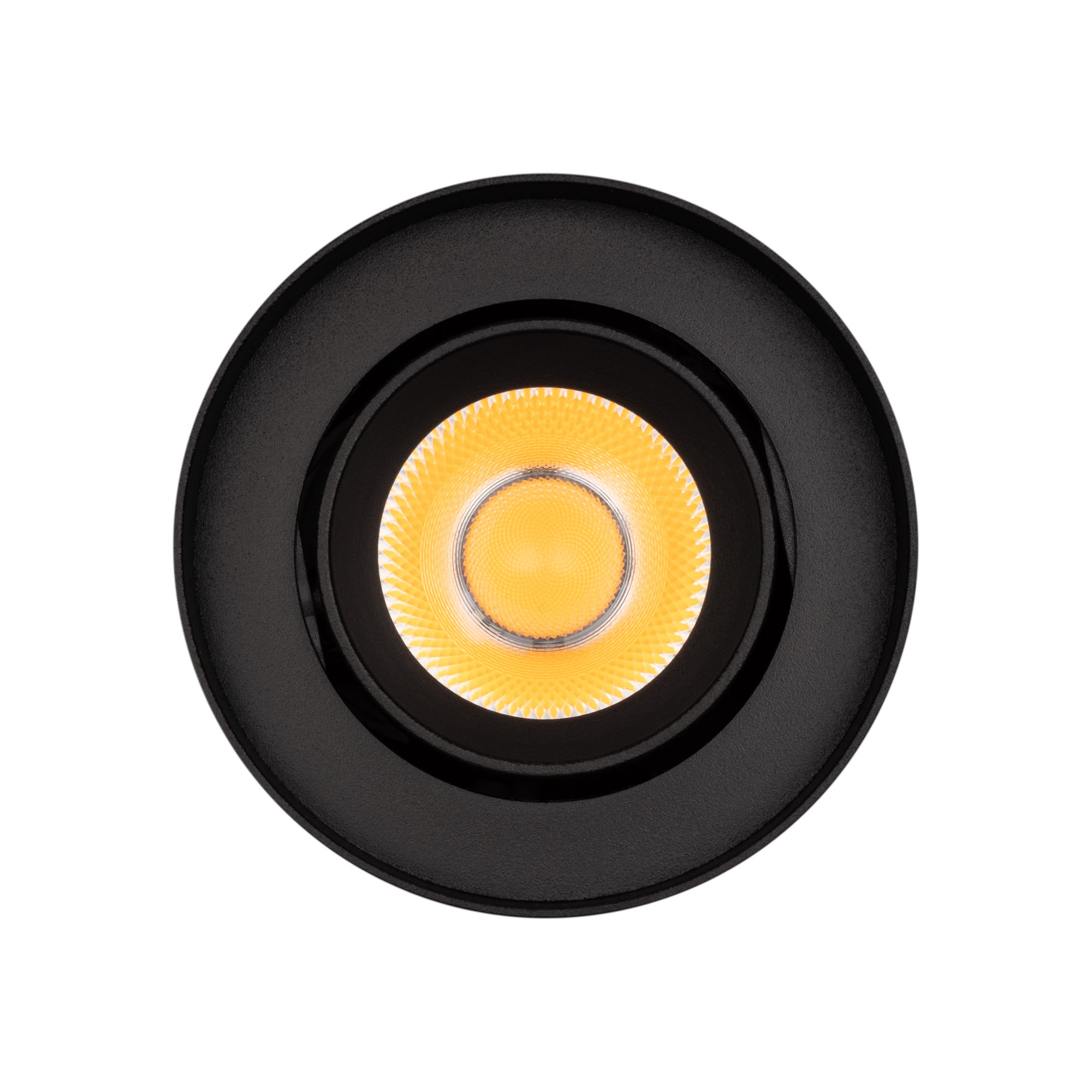 Накладной интерьерный светильник. Мощность 10 Вт, св. поток 970 лм, 93 лм/Вт, теплый 3000 K, CRI>90, угол 24°, регулируемое направление луча 40° (20+20), поворотный световой модуль вокруг своей оси на 340°, UGR <18, напряжение питания 230 В. Черный круглый корпус из алюминия, степень защиты IP54. Размер: диаметр 86,5 мм, высота 120 мм. Монтаж накладной. Драйвер 27-43 В, 250 мА, пульсация <1%.