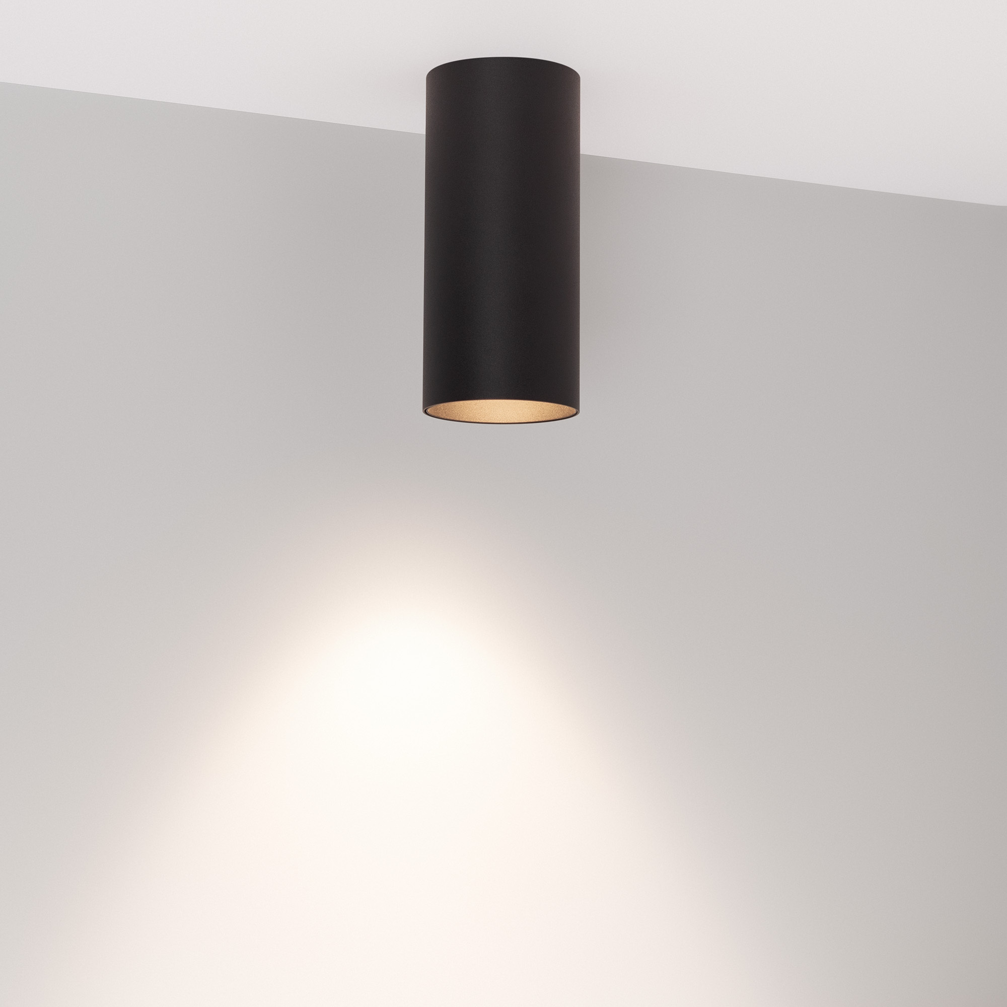 Накладной светильник. Мощность 12 Вт, св. поток 1200 лм, 100 лм/Вт, дневной 4000 K, CRI>90, угол 60°, напряжение питания 230 В. Чёрный круглый корпус из алюминия, экран PMMA, степень защиты IP40. Размер: диаметр 60 мм, высота 130 мм. Монтаж накладной. Встроенный драйвер 27-42 В, 300 мA, пульсация <1%.