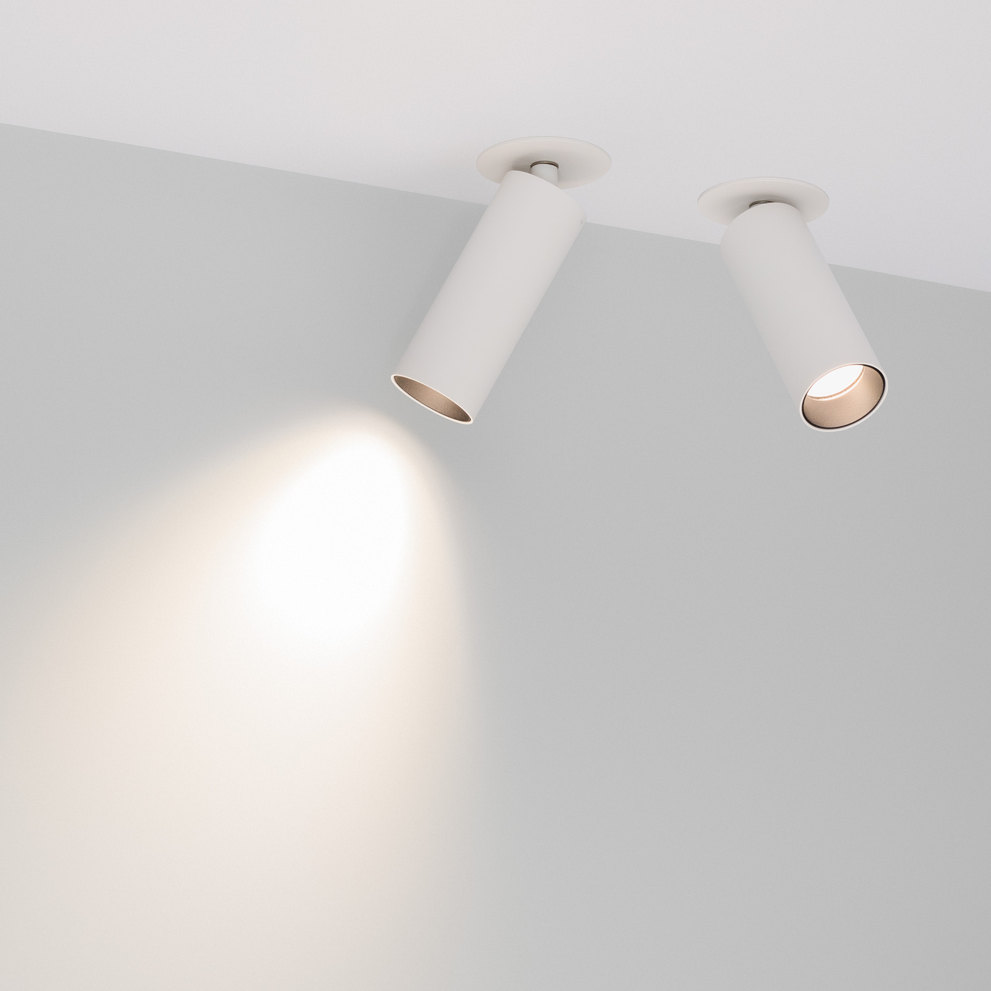 Светильник встраиваемый откидной. Мощность 7 Вт, св. поток 580 лм, 82 лм/Вт, дневной 4000 K, CRI>90, угол 36°, напряжение питания 230 В. Белый круглый корпус из алюминия, экран PMMA, степень защиты IP40. Размер: диаметр 35 мм, высота светового модуля 90 мм, высота основания 1.5 мм. Угол поворота 350°, угол наклона 90°. Монтаж встраиваемый, установочное отверстие: диаметр 45 мм, глубина 29 мм. Драйвер в комплекте 30-40 В, 150 мA, пульсация <1%.