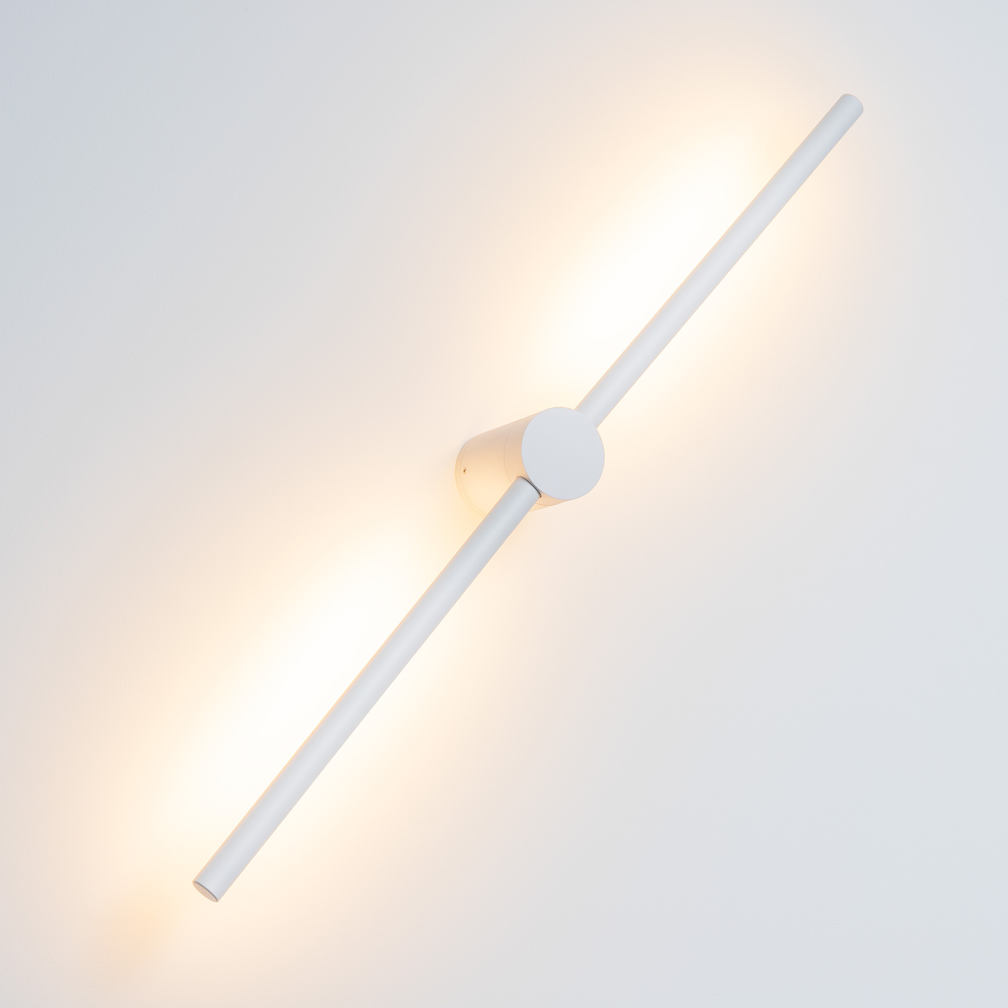 Накладной настенный светильник 12Вт, линейный алюминиевый корпус белого цвета с поворотным световым модулем. Цвет свечения ТЕПЛЫЙ БЕЛЫЙ 3000K, св.поток 650лм, CRI(Ra)>90, угол 100°. Размер Основание 60x100мм, Светоизлучатель Ø19×710 мм. IP20. Питание AC220-240V, 12 Вт, встроенный драйвер. 2 драйвера: 2,8-12 В, 500мА.