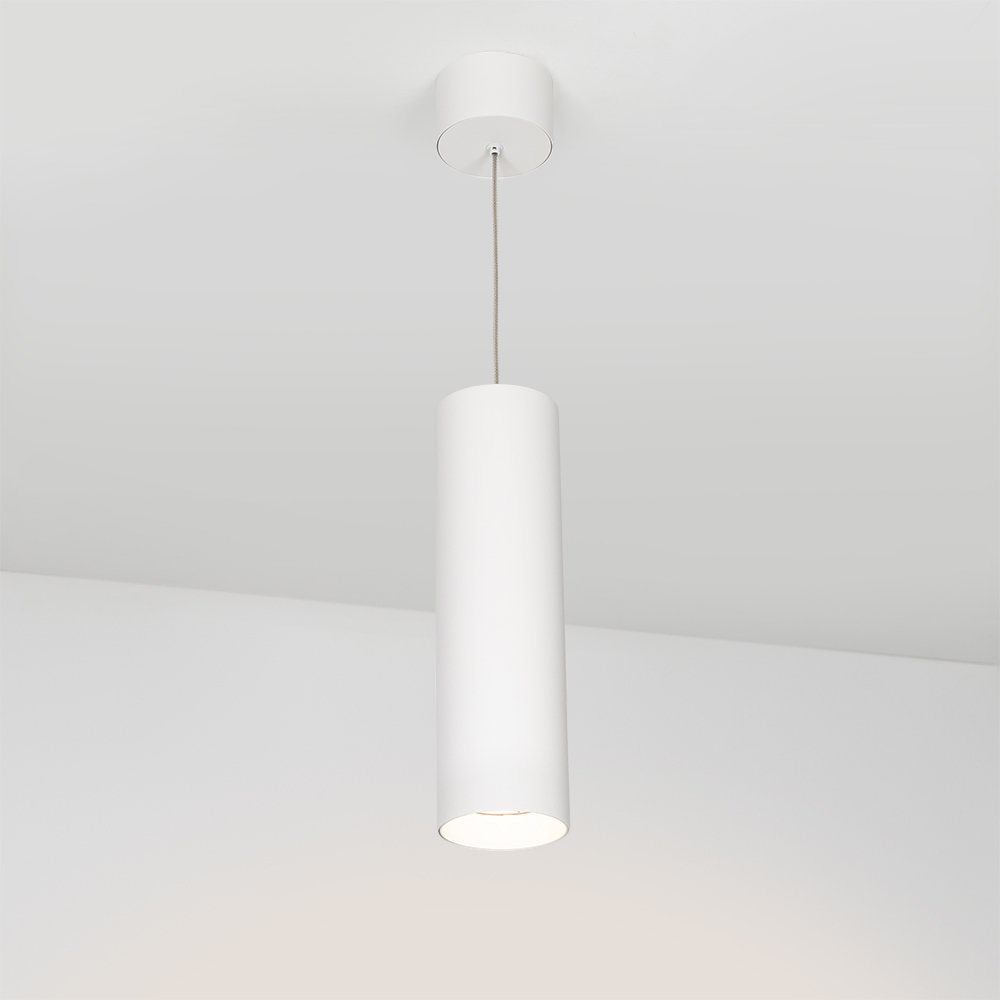 Подвесной светильник 15Вт, белый круглый корпус, белая вставка, металл. Цвет свечения БЕЛЫЙ ТЕПЛЫЙ 3000K, св.поток 1100лм, CRI(Ra)>80, угол 40°. Размер Ø85x300мм, встроенный драйвер PRI:220-240VAC, SEC:DC 350mA 30-43V 15Вт.