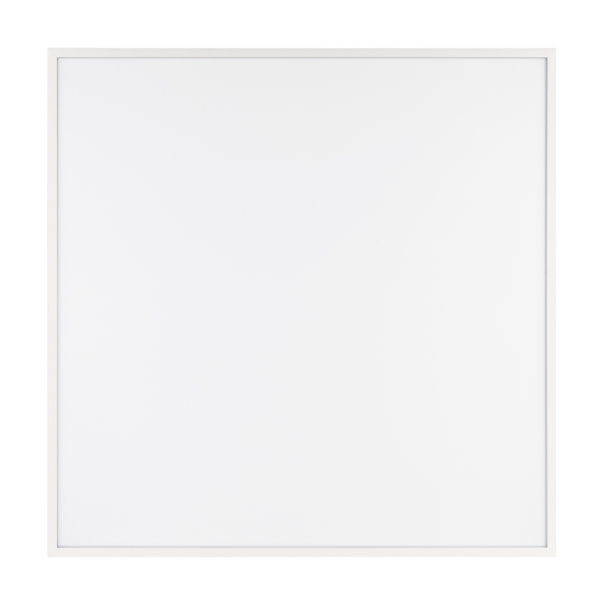 Накладной светильник. Мощность 30 Вт, св. поток 2000-2540 лм, 85 лм/Вт, теплый 3000 K, CRI>90, угол 120°, напряжение питания 230 В. Белый квадратный корпус из алюминия, экран PC, степень защиты IP40. Размер: длина 350 мм, ширина 350 мм, высота 64 мм. Монтаж накладной. Драйвер 27-42 В, 800 мА, пульсация <5%.