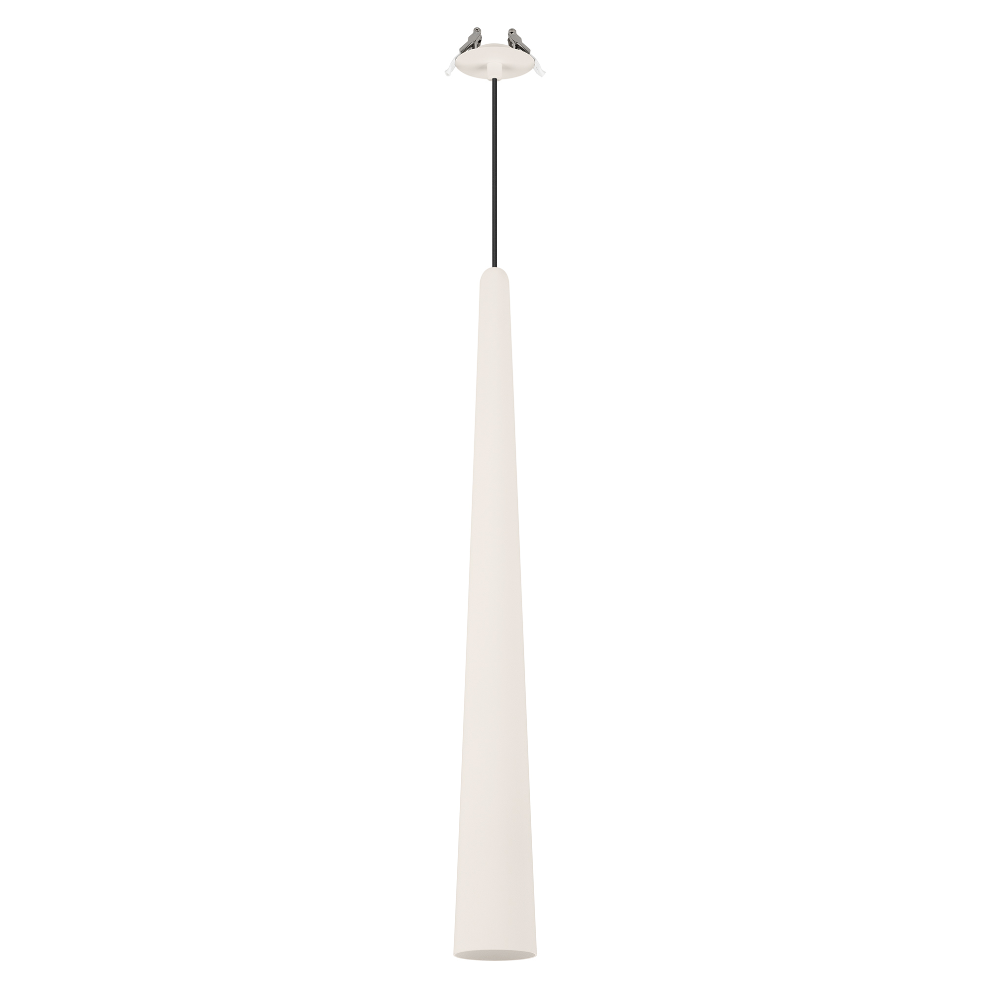 Подвесной светильник. Мощность 5 Вт, св. поток 400 лм, 70 лм/Вт, теплый 3000K, CRI>92, угол 36°, напряжение питания 230 В. Кремовый конусообразный вытянутый корпус из алюминия, линза из PMMA, степень защиты IP20. Размер: диаметр 76 мм, высота 670 мм. Монтаж подвесной, длина подвеса 2000 мм, регулируемая. В комплекте 2 вида чаш. Габариты встраиваемой чаши: Ø 80x41 мм. Габариты накладной чаши Ø80x60 мм. Драйвер 2,8-12В, 500 мА, пульсация <1%.