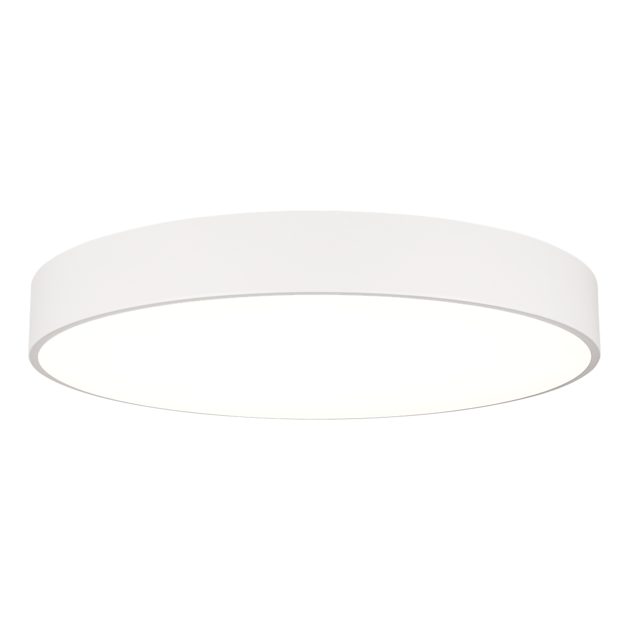 Накладной интерьерный светильник. Мощность 94 Вт, св. поток 7620 лм, 80 лм/Вт, дневной 4000 K, CRI>80, угол 100°, напряжение питания 230 В. Белый круглый корпус из алюминия, степень защиты IP20. Призматический акриловый рассеиватель. Размер: диаметр 800 мм, высота 100 мм. Монтаж накладной. Драйвер 28-42 В, 1200 мА (2 шт.), пульсация <2%.