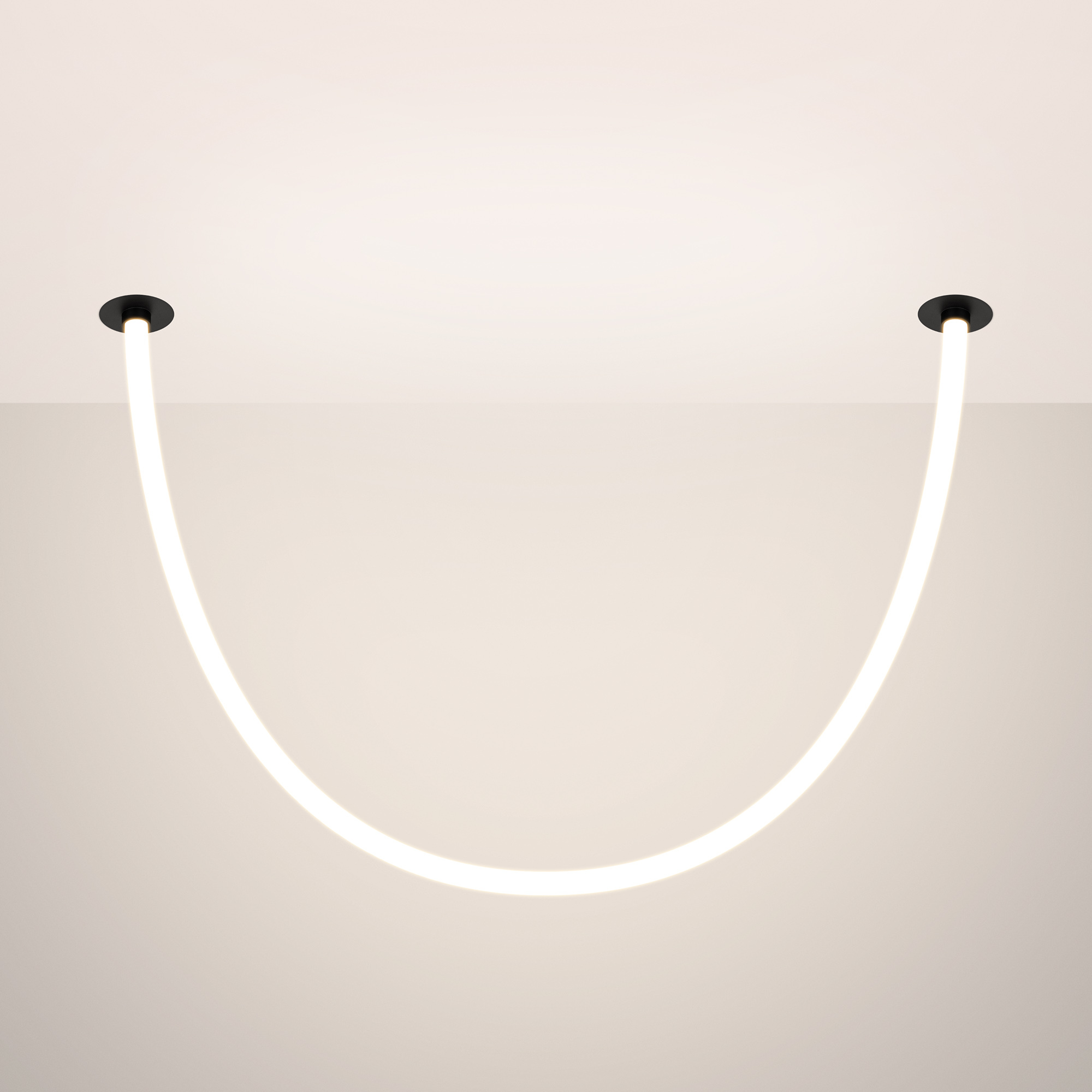 Подвесной светильник. Мощность 18 Вт, св. поток 980 лм, 54 лм/Вт, тёплый 3000 K, CRI>90, угол 360°, напряжение питания 230 В. Черный круглый корпус из стали, силиконовая герметичная лента, степень защиты IP20. Размер: диаметр утапливаемой части чаши 64 мм, высота чаши с утапливаемой частью без вывода под неон 40 мм, общая высота чаши 57 мм, диаметр чаши с фланцем 100 мм, диаметр силиконовой герметичной ленты 18 мм, длина силиконовой герметичной ленты 1200 мм. Монтаж встраиваемый, глубина установки 55 мм, диаметр установочного отверстия 70 мм. Блок питания 24 В, 750 мА, пульсация <1%.