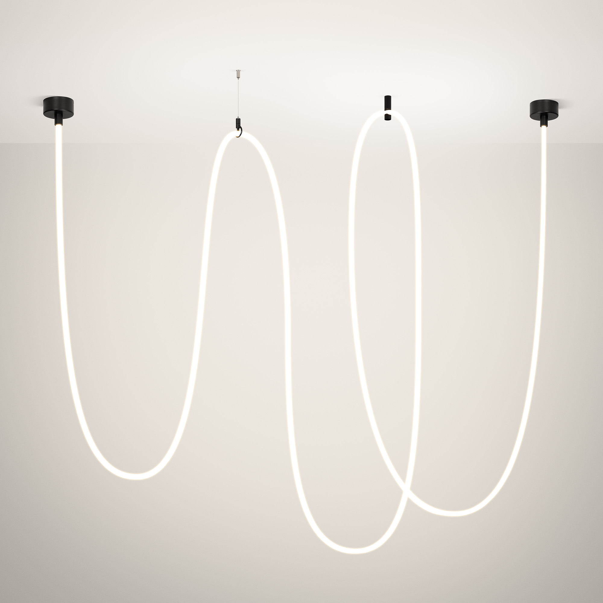 Подвесной светильник. Мощность 110 Вт, св. поток 7455 лм, 67 лм/Вт, дневной 4000 K, CRI>90, угол 360°, напряжение питания 230 В. Черный круглый корпус из стали, силиконовая герметичная лента, степень защиты IP20. Размер: общая высота чаши 85 мм, высота чаши без вывода под неон 50 мм, диаметр вывода под неон 35 мм, диаметр чаши 130 мм, диаметр силиконовой герметичной ленты 18 мм, длина силиконовой герметичной ленты 10000 мм. Монтаж накладной. Блок питания 24 В, 2500 мА, пульсация <5% (2 шт.). Аксессуары (подвес и крепление) приобретаются отдельно.