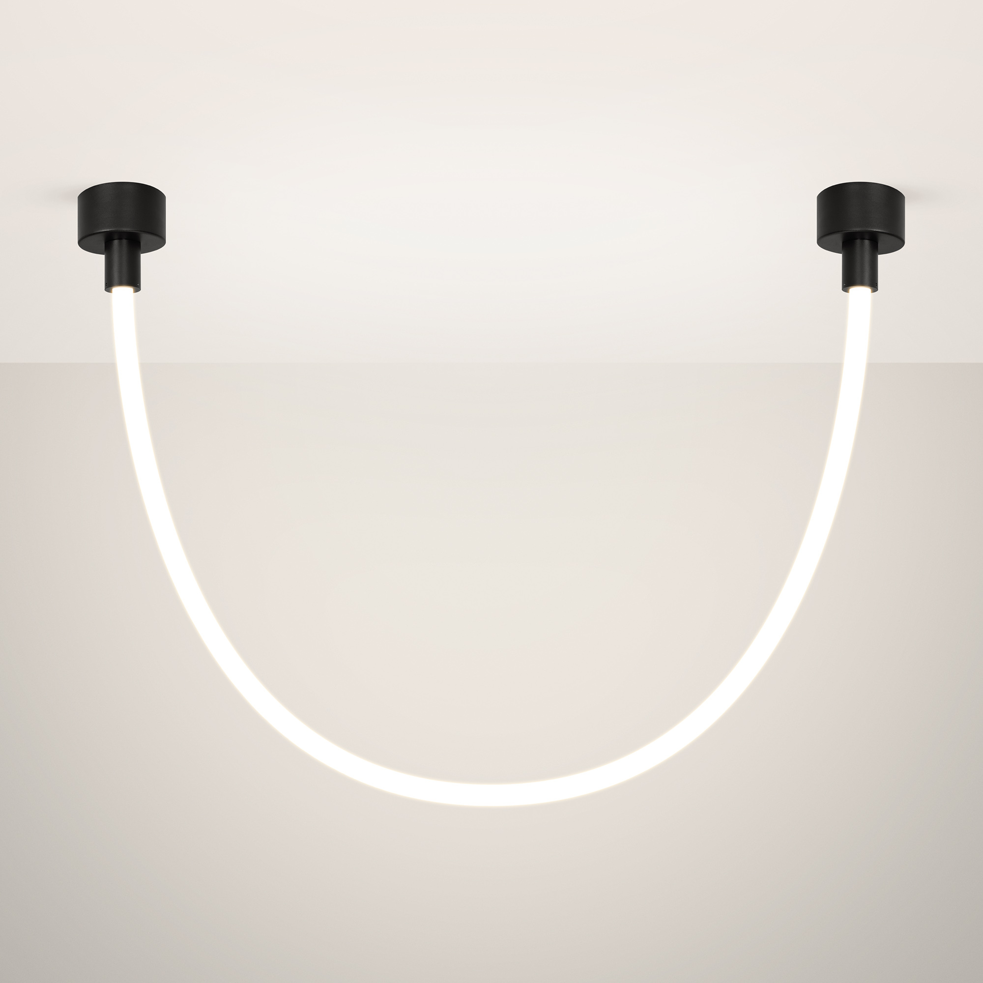 Подвесной светильник. Мощность 18 Вт, св. поток 1160 лм, 64 лм/Вт, дневной 4000 K, CRI>90, угол 360°, напряжение питания 230 В. Черный круглый корпус из стали, силиконовая герметичная лента, степень защиты IP20. Размер: общая высота чаши 85 мм, высота чаши без вывода под неон 50 мм, диаметр вывода под неон 35 мм, диаметр чаши 130 мм, диаметр силиконовой герметичной ленты 18 мм, длина силиконовой герметичной ленты 1200 мм. Монтаж накладной. Блок питания 24 В, 750 мА, пульсация <5%.