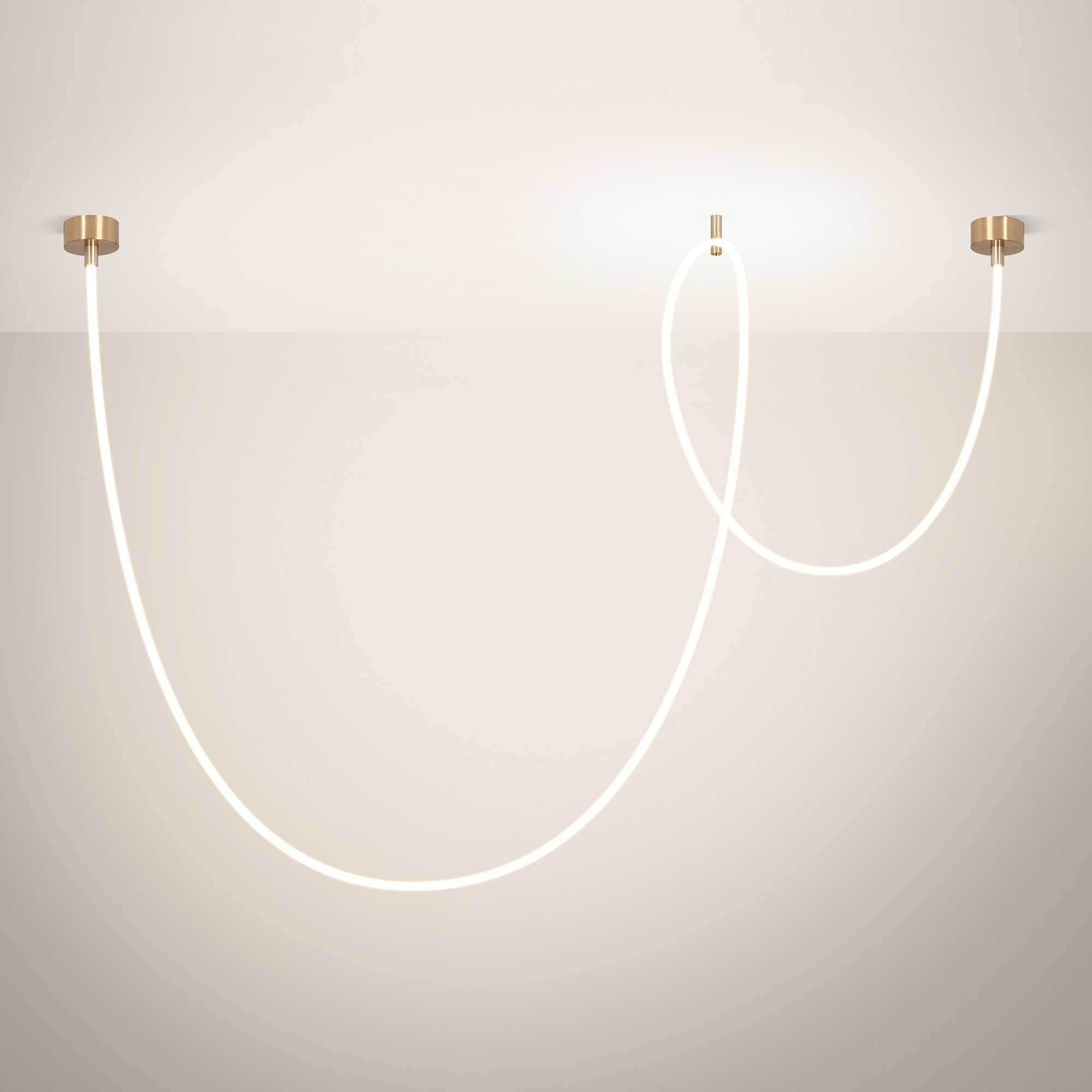 Подвесной светильник. Мощность 58 Вт, св. поток 3260 лм, 56 лм/Вт, тёплый 3000 K, CRI>90, угол 360°, напряжение питания 230 В. Золотой круглый корпус из стали, силиконовая герметичная лента, степень защиты IP20. Размер: общая высота чаши 85 мм, высота чаши без вывода под неон 50 мм, диаметр вывода под неон 35 мм, диаметр чаши 130 мм, диаметр силиконовой герметичной ленты 18 мм, длина силиконовой герметичной ленты 5000 мм. Монтаж накладной. Блок питания 24 В, 2500 мА, пульсация <5%. Аксессуары (подвес и крепление) приобретаются отдельно.