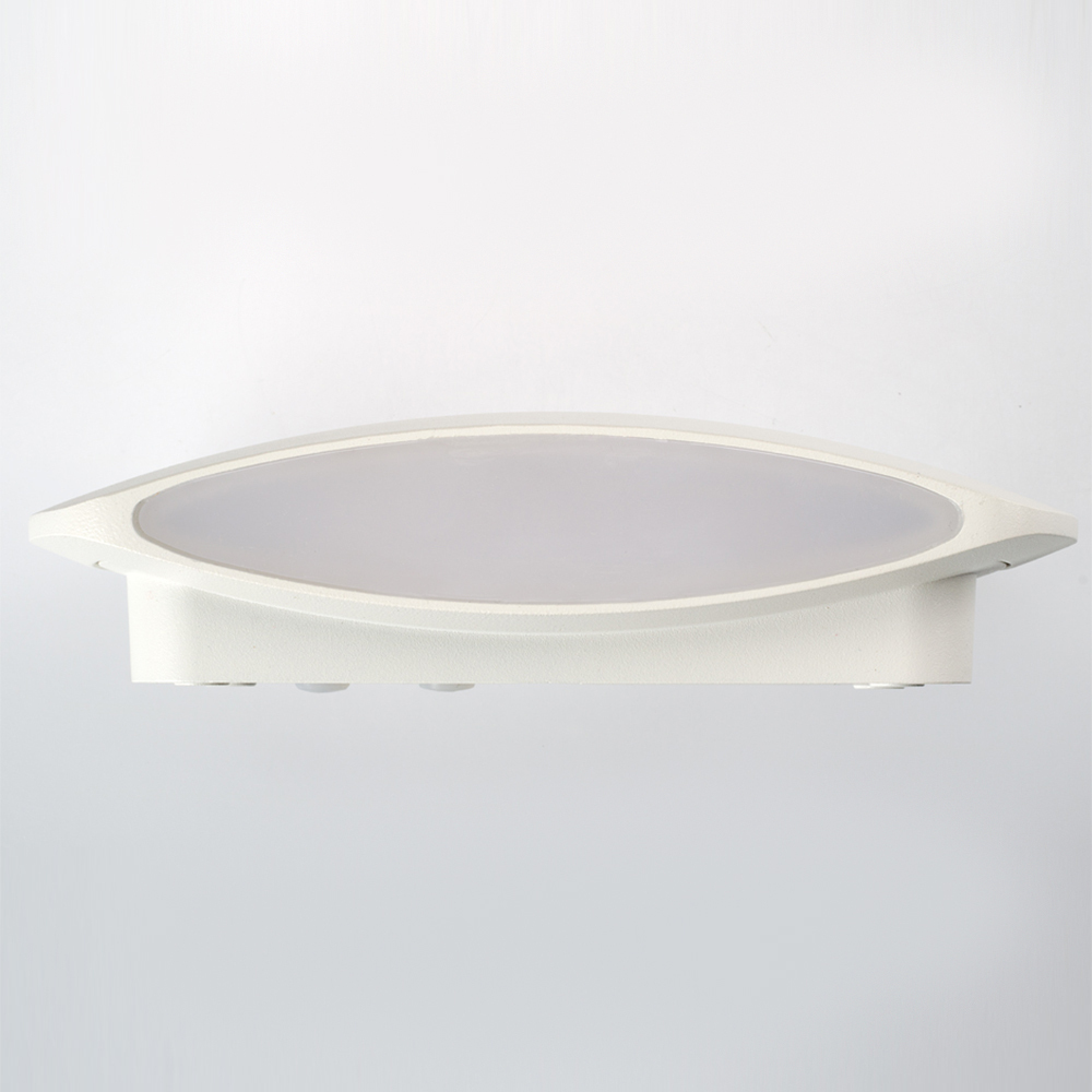 Накладной настенный светильник 2x6Вт, белый алюминиевый корпус, матовый рассеиватель из поликарбоната. Цвет ТЕПЛЫЙ БЕЛЫЙ 3000K, св.поток 950лм, CRI(Ra)>80, угол 120°, свет вверх-вниз. Размер 200x110x53мм. IP54. Питание AC220-240V, 12Вт, встроенный драйвер.