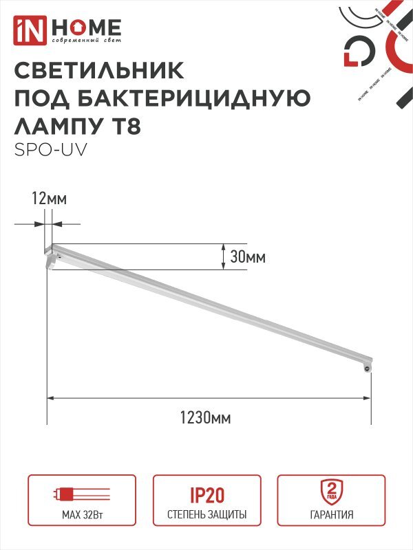 Светильник SPO-UV 1xT8-UV-PRO 40Вт G13 IP20 230В 1200мм под бактерицидную лампу IN HOME 4690612034515