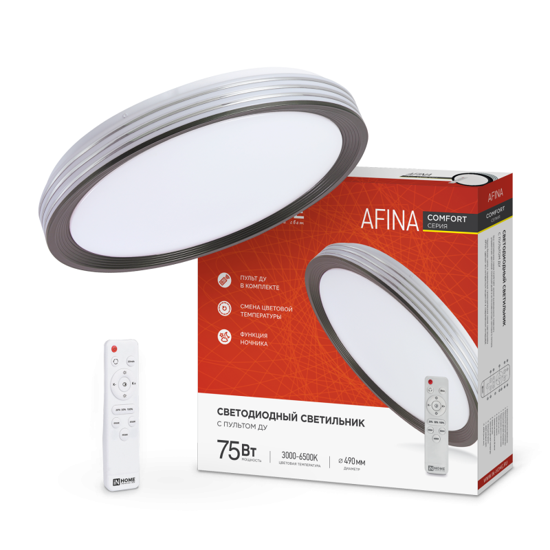 Светильник светодиодный COMFORT AFINA 75Вт 3000-6500К 6000лм 230В 490х90мм с пультом ДУ IN HOME 4690612035147