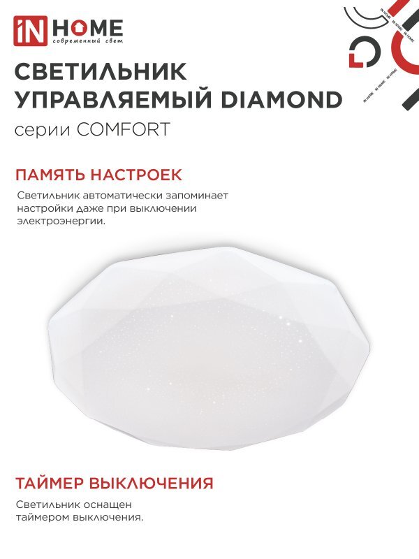 Светильник светодиодный COMFORT DIAMOND 125Вт 3000-6500К 10000лм 230В 500х105мм с пультом ДУ IN HOME 4690612059488