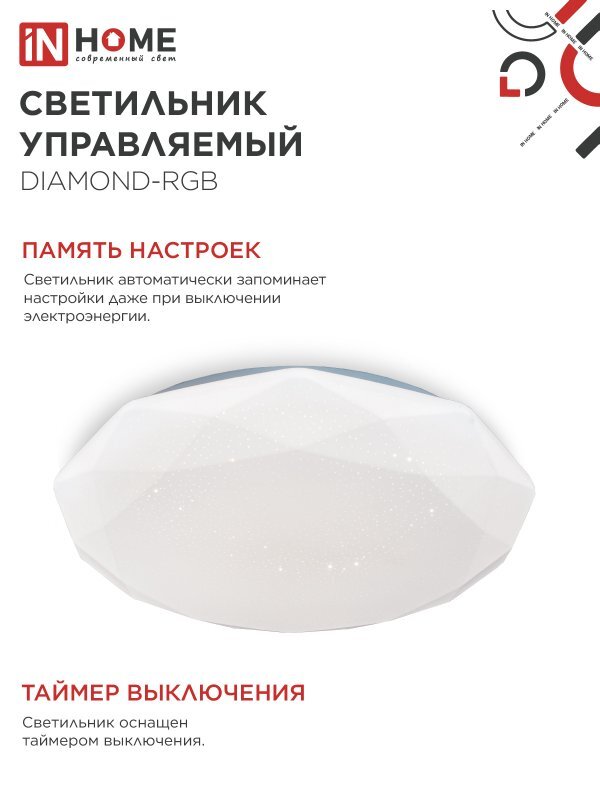 Светильник светодиодный COMFORT DIAMOND-RGB 75Вт 3000-6500К 6000лм 230В 500х90мм с пультом ДУ IN HOME 4690612044583